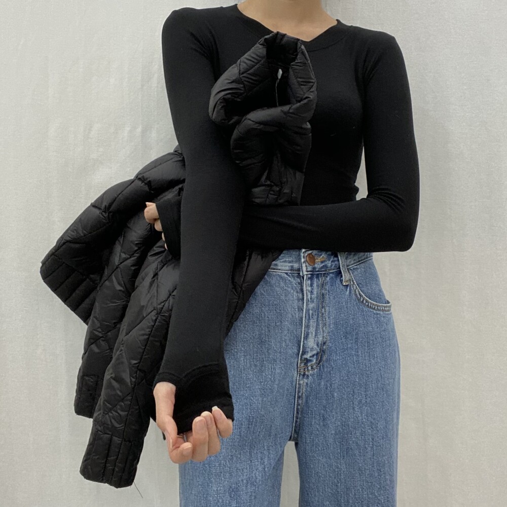 신축성이 좋으며 부드럽게 감기는 소재로 포근한 워머 티셔츠입니다.