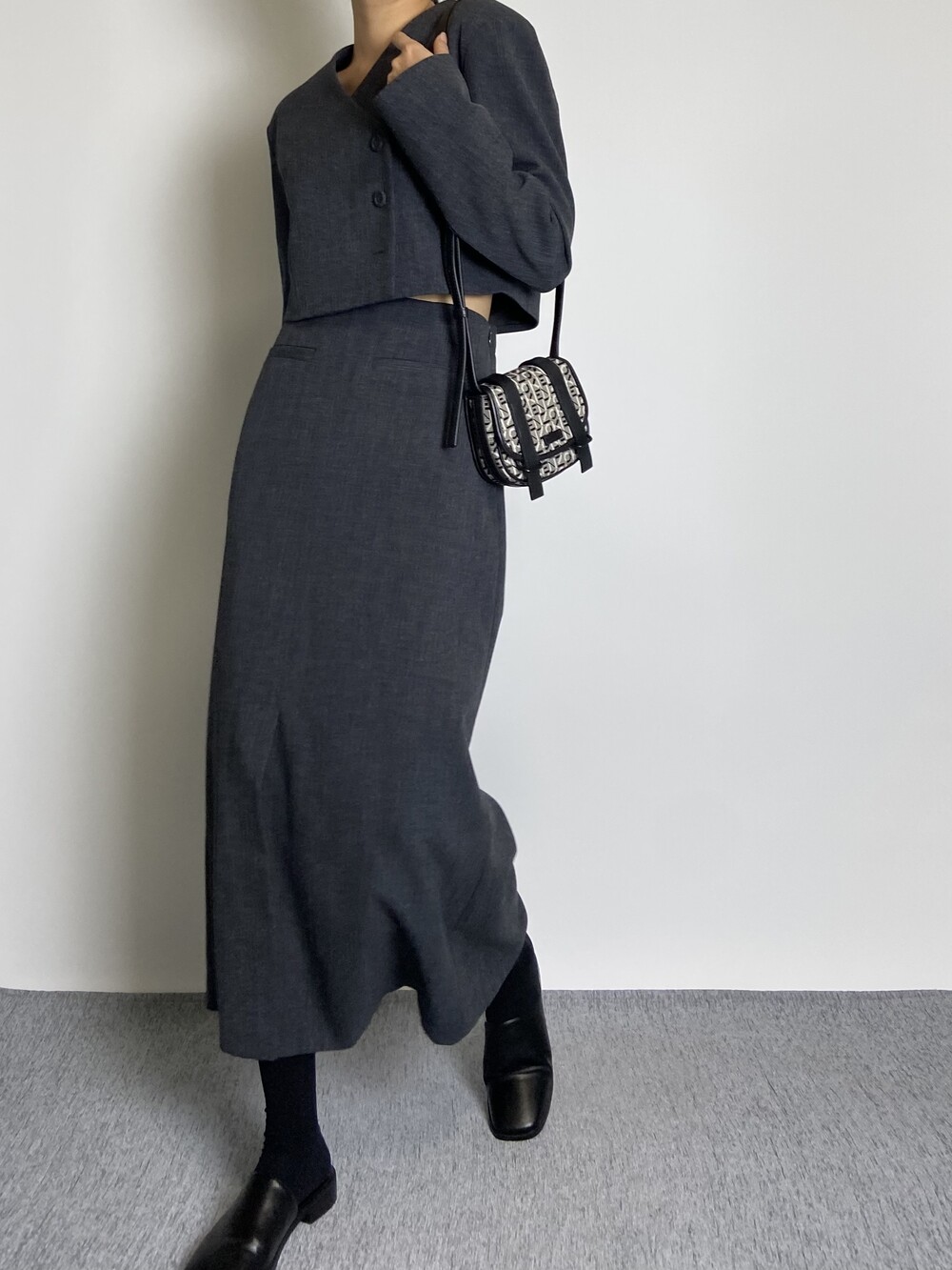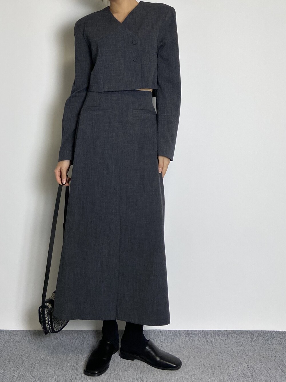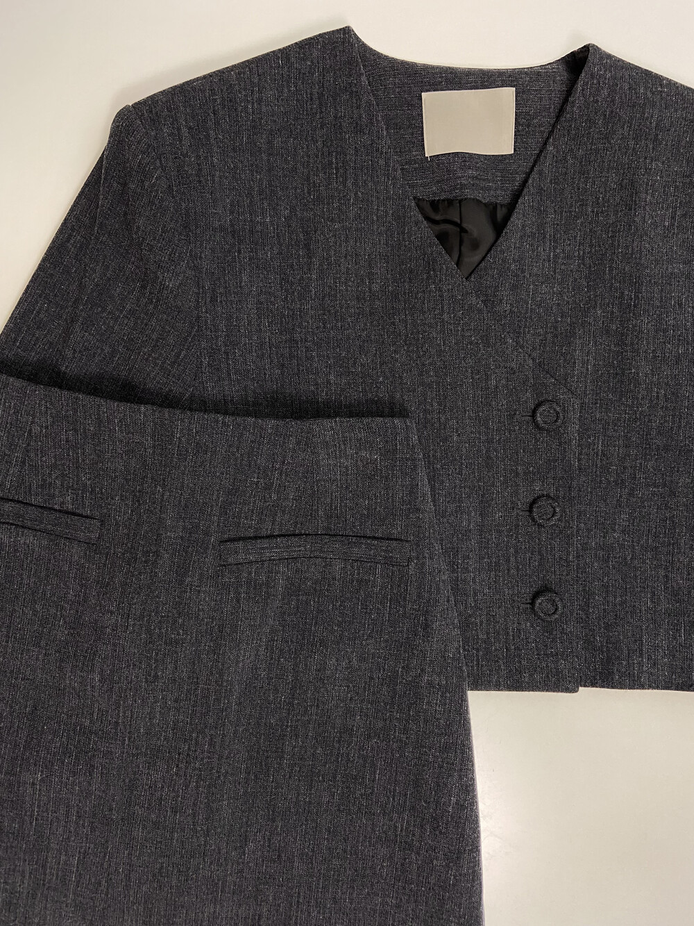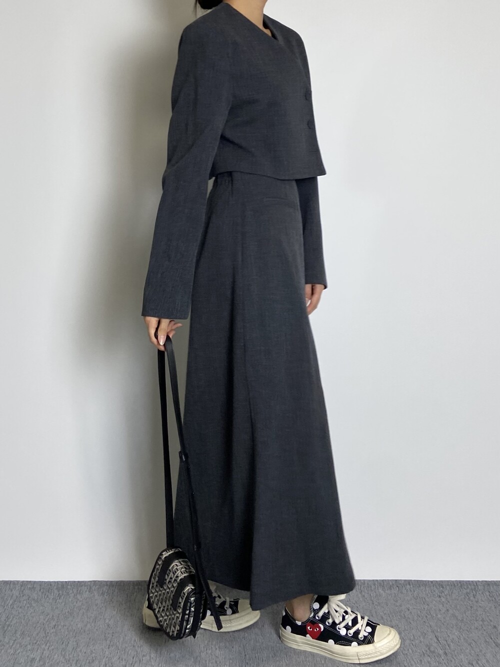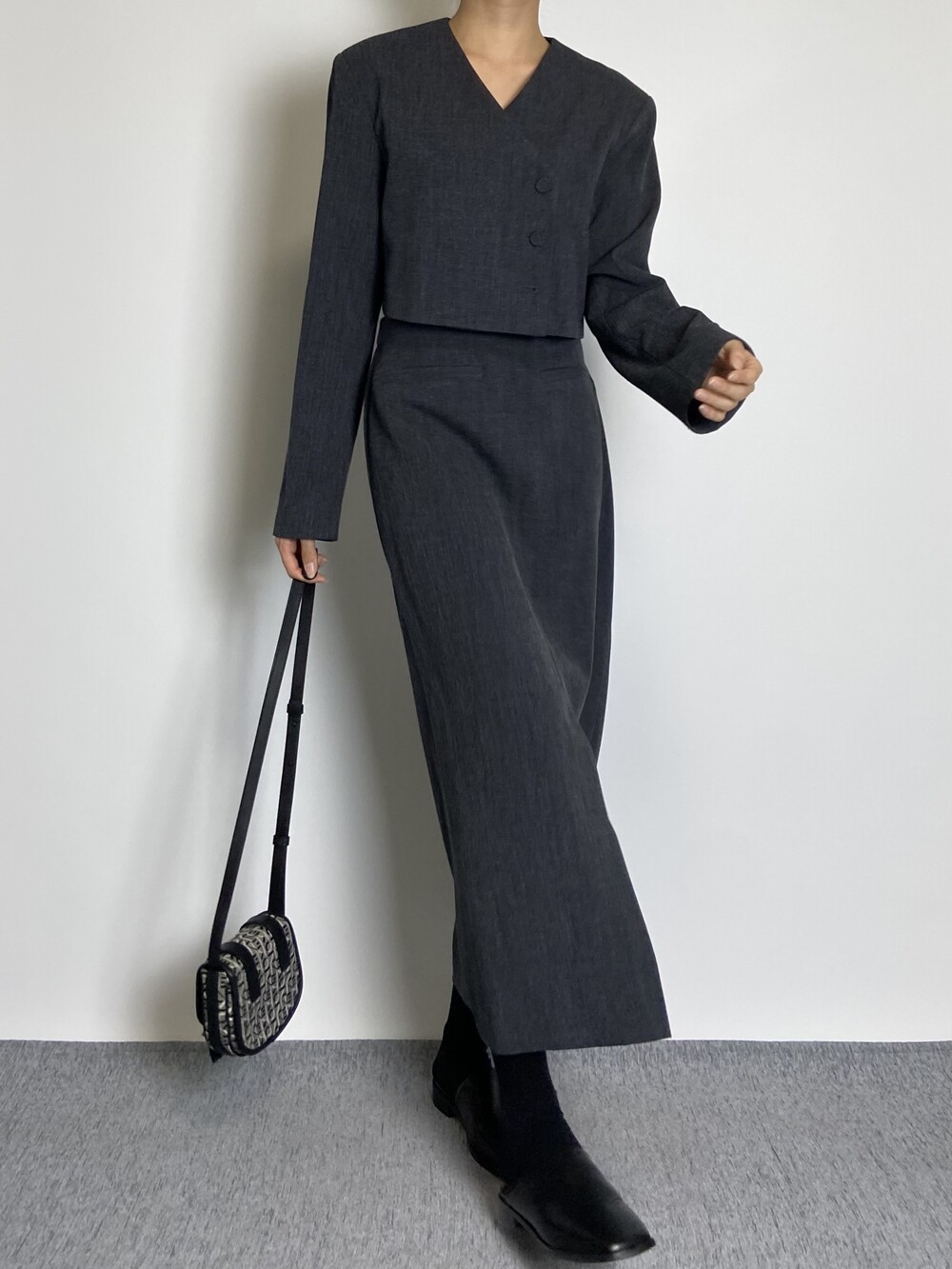 밀키 노카라 크롭 자켓 스커트 셋업 _253