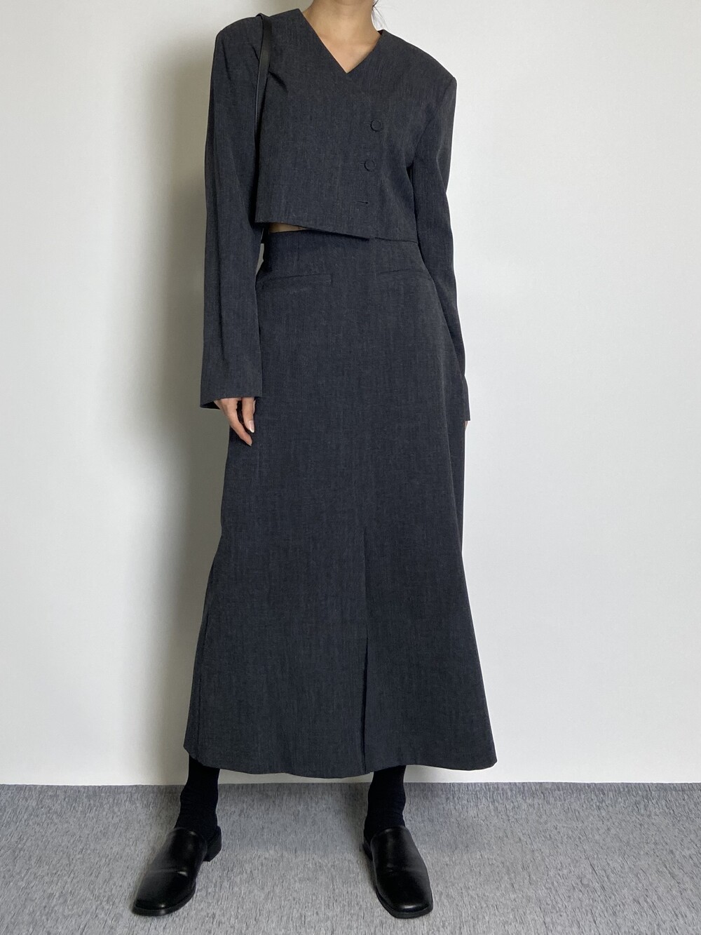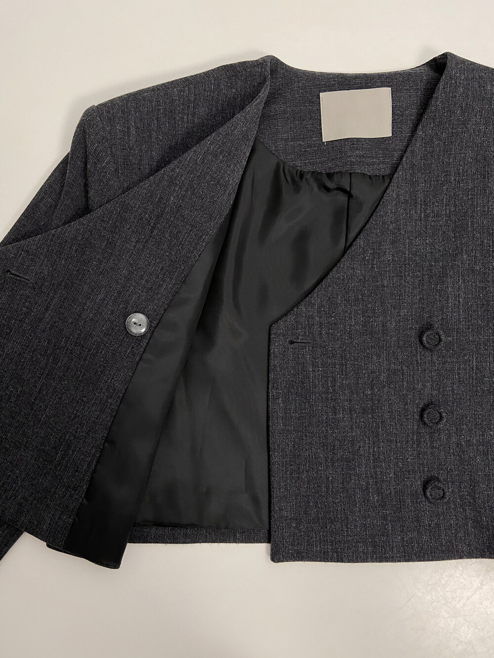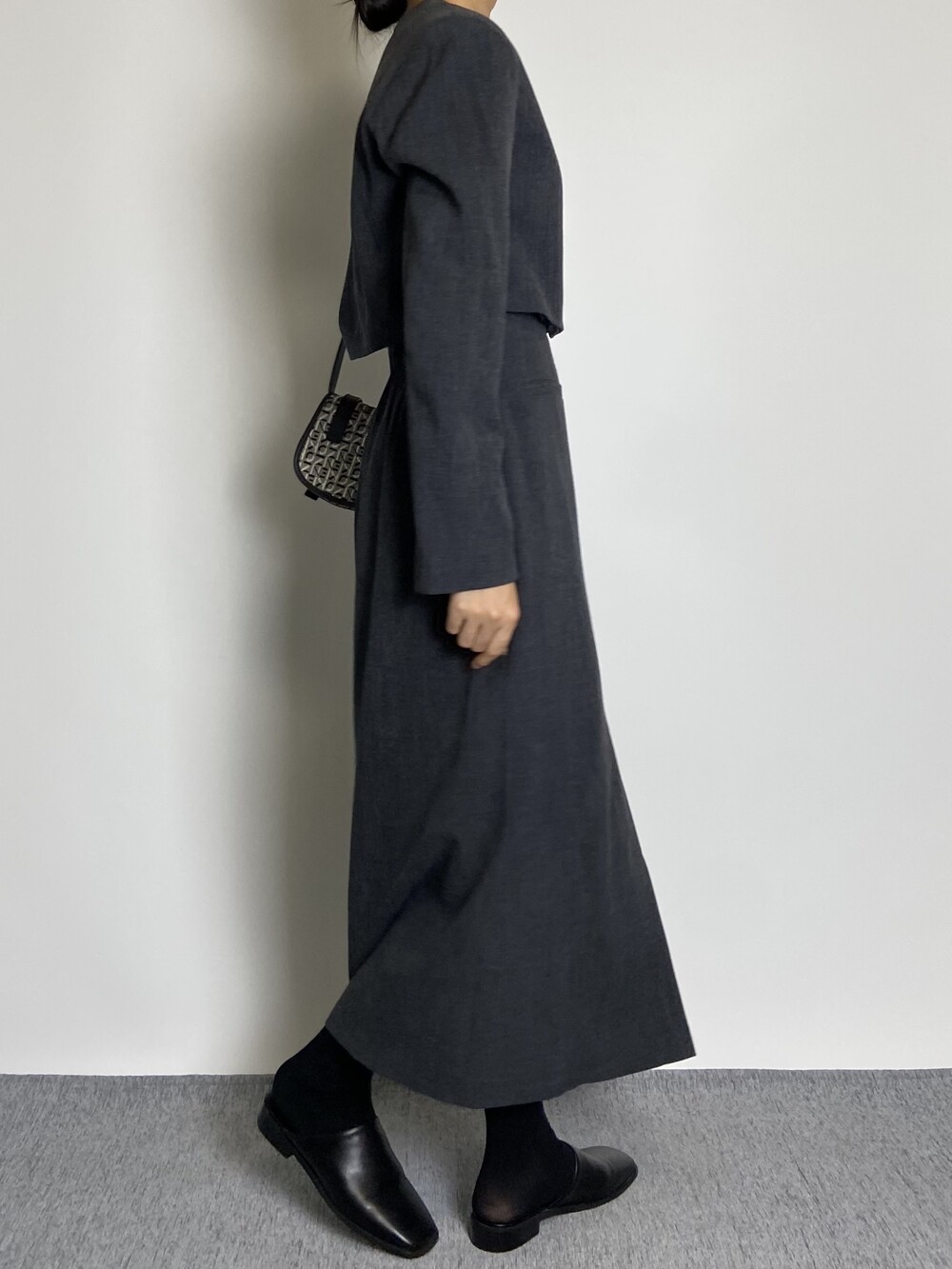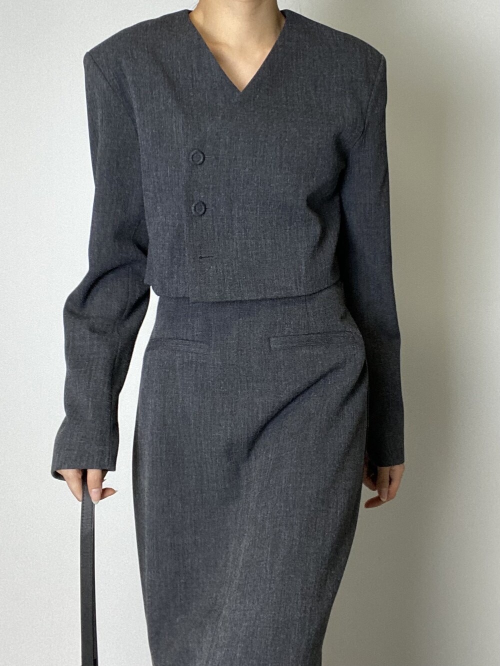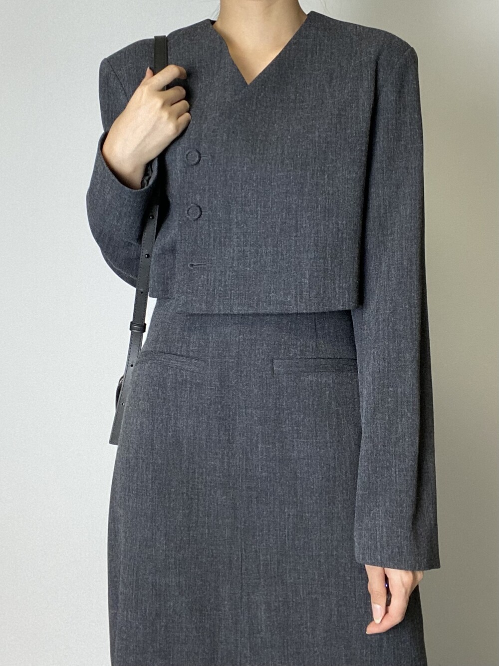밀키 노카라 크롭 자켓 스커트 셋업 _253