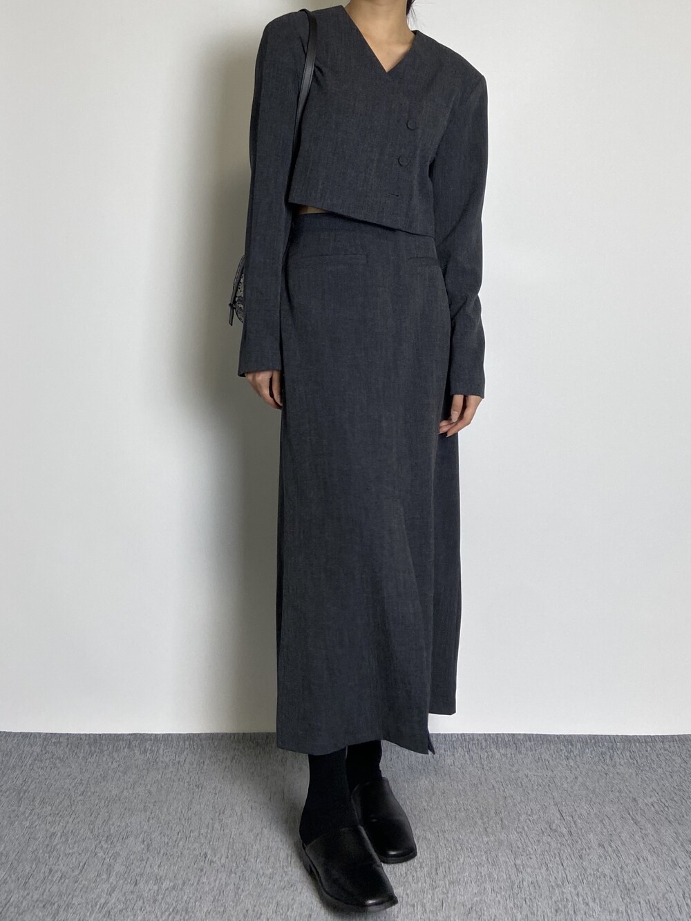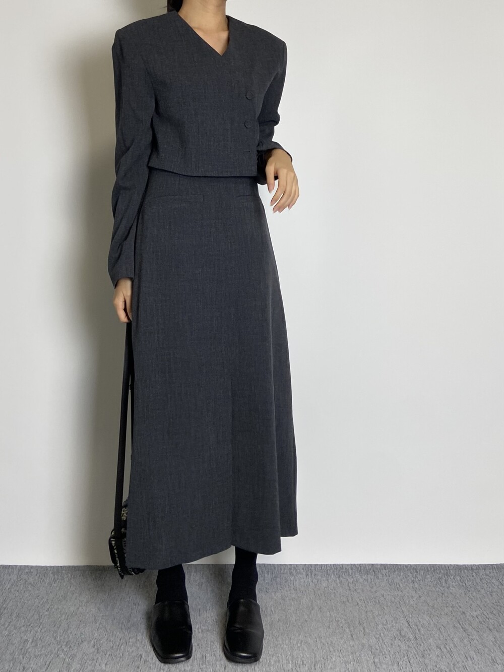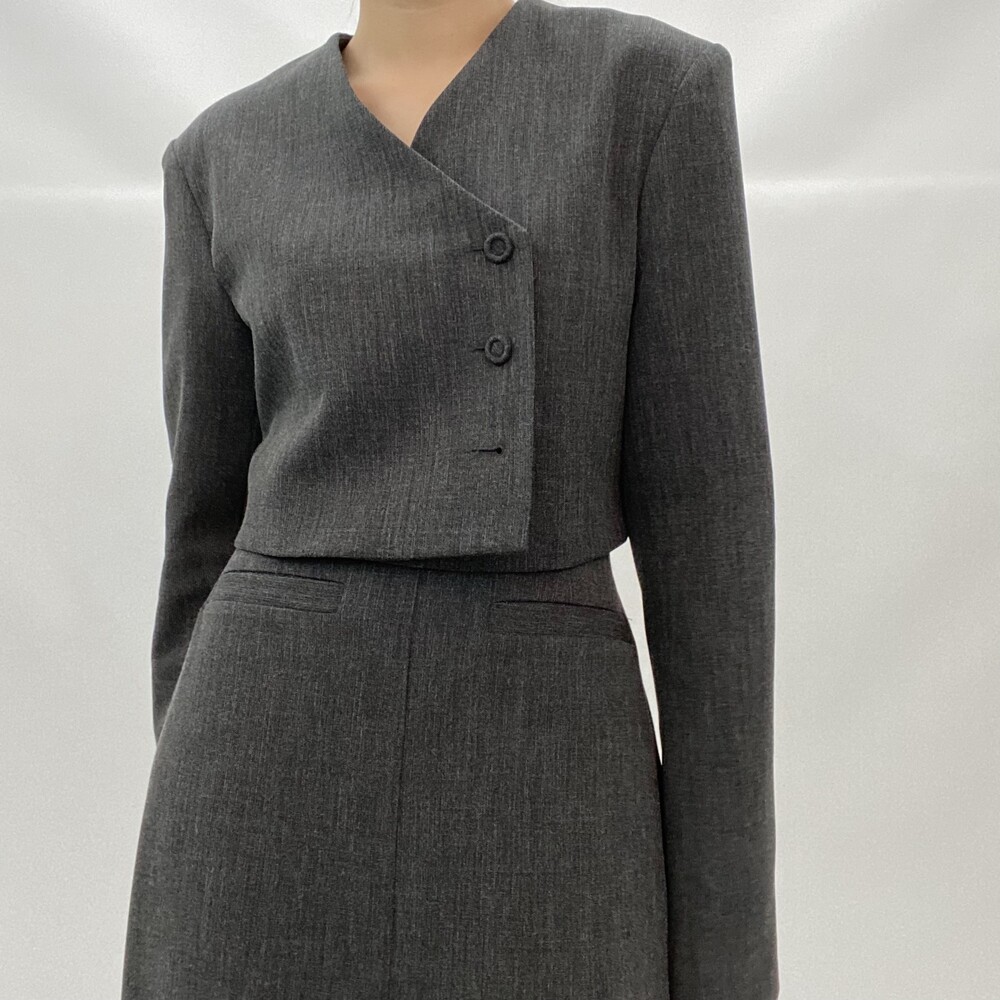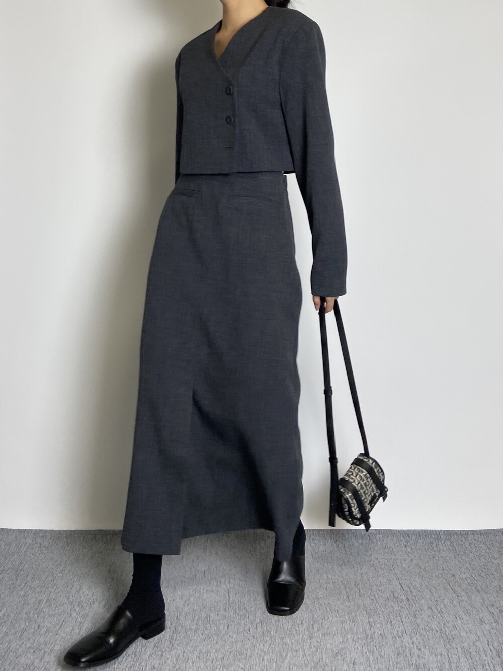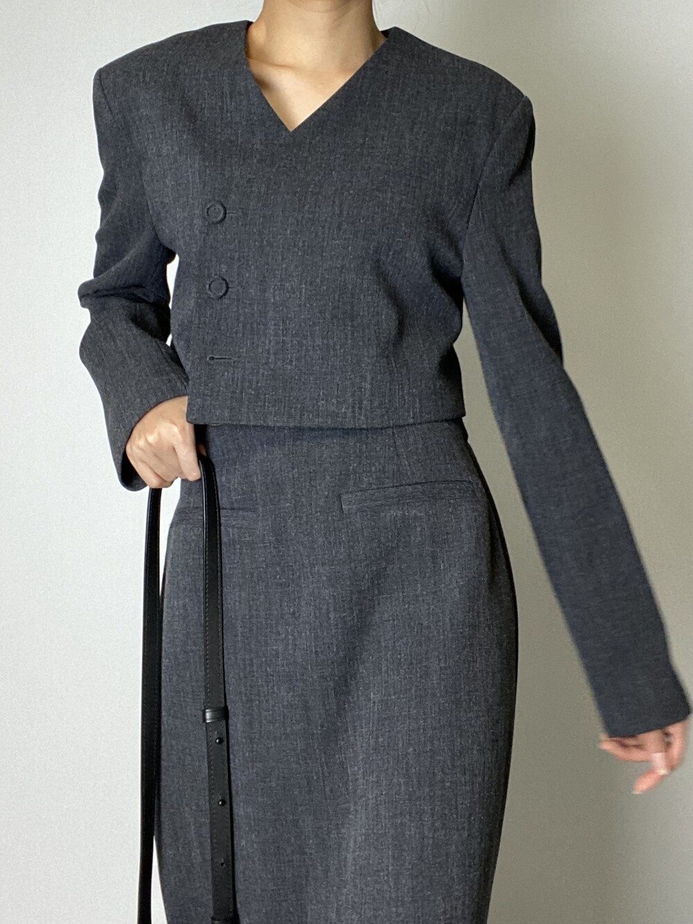 밀키 노카라 크롭 자켓 스커트 셋업 _253