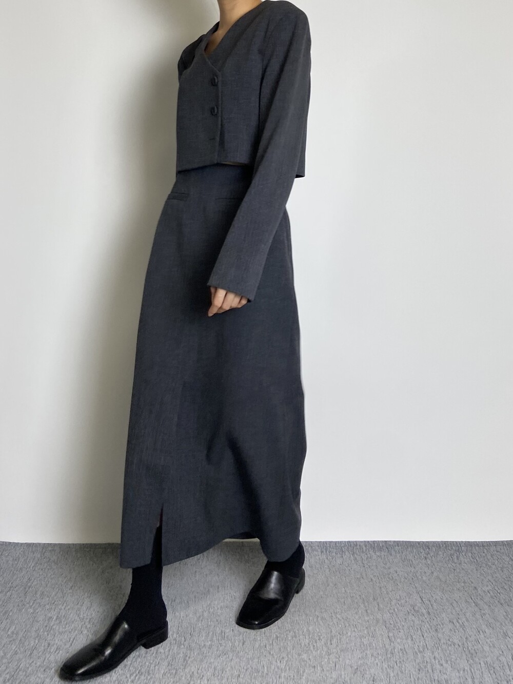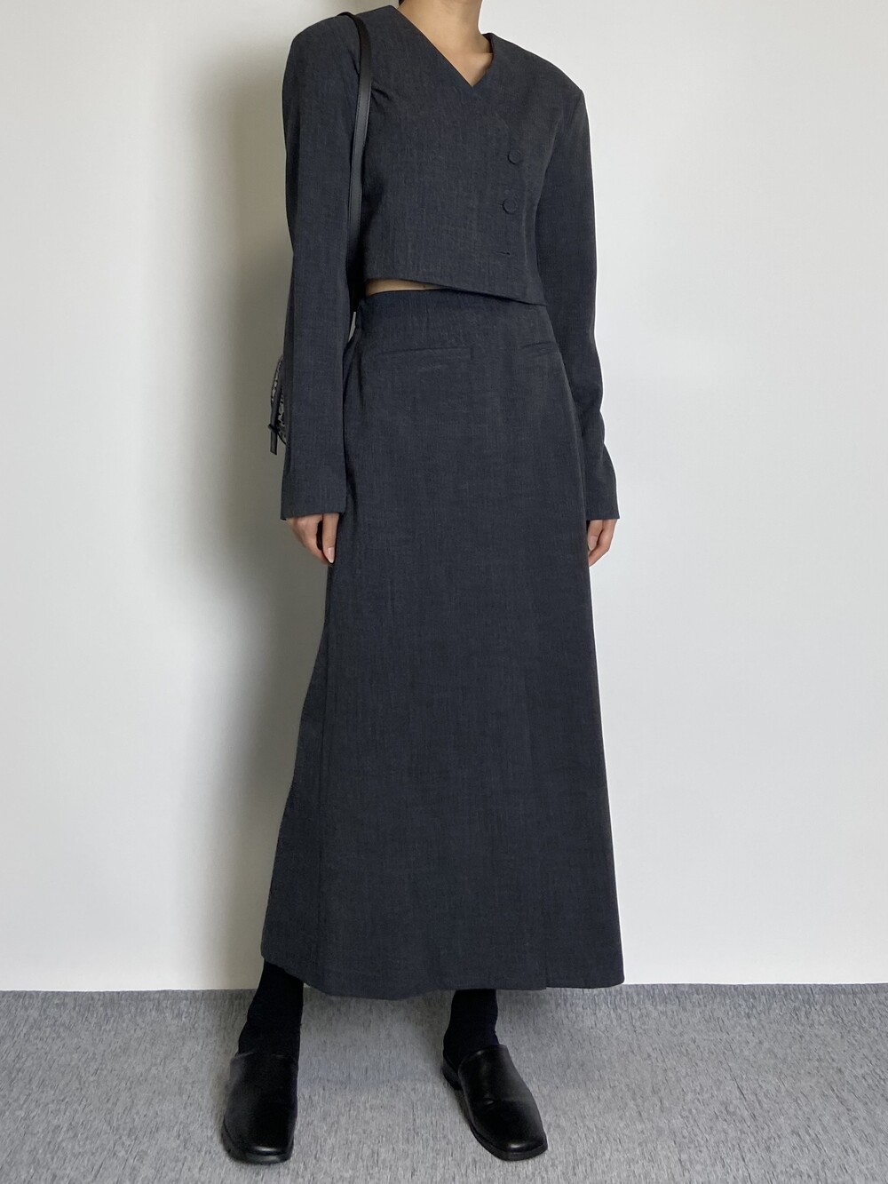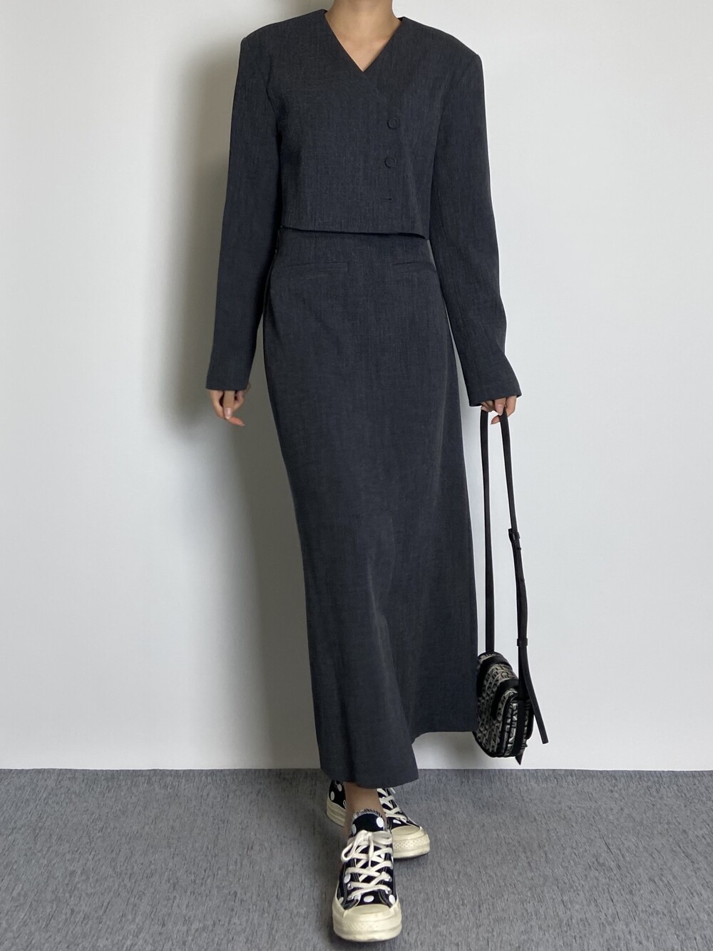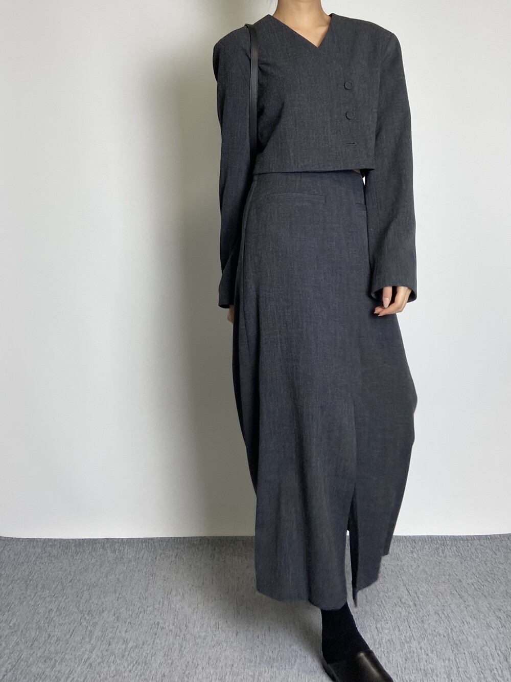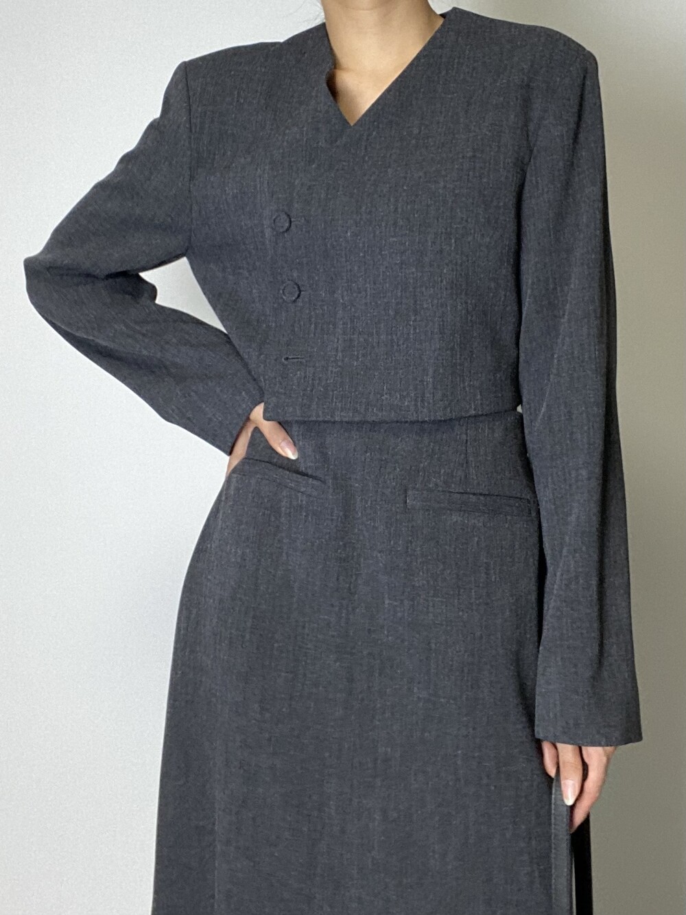 밀키 노카라 크롭 자켓 스커트 셋업 _253