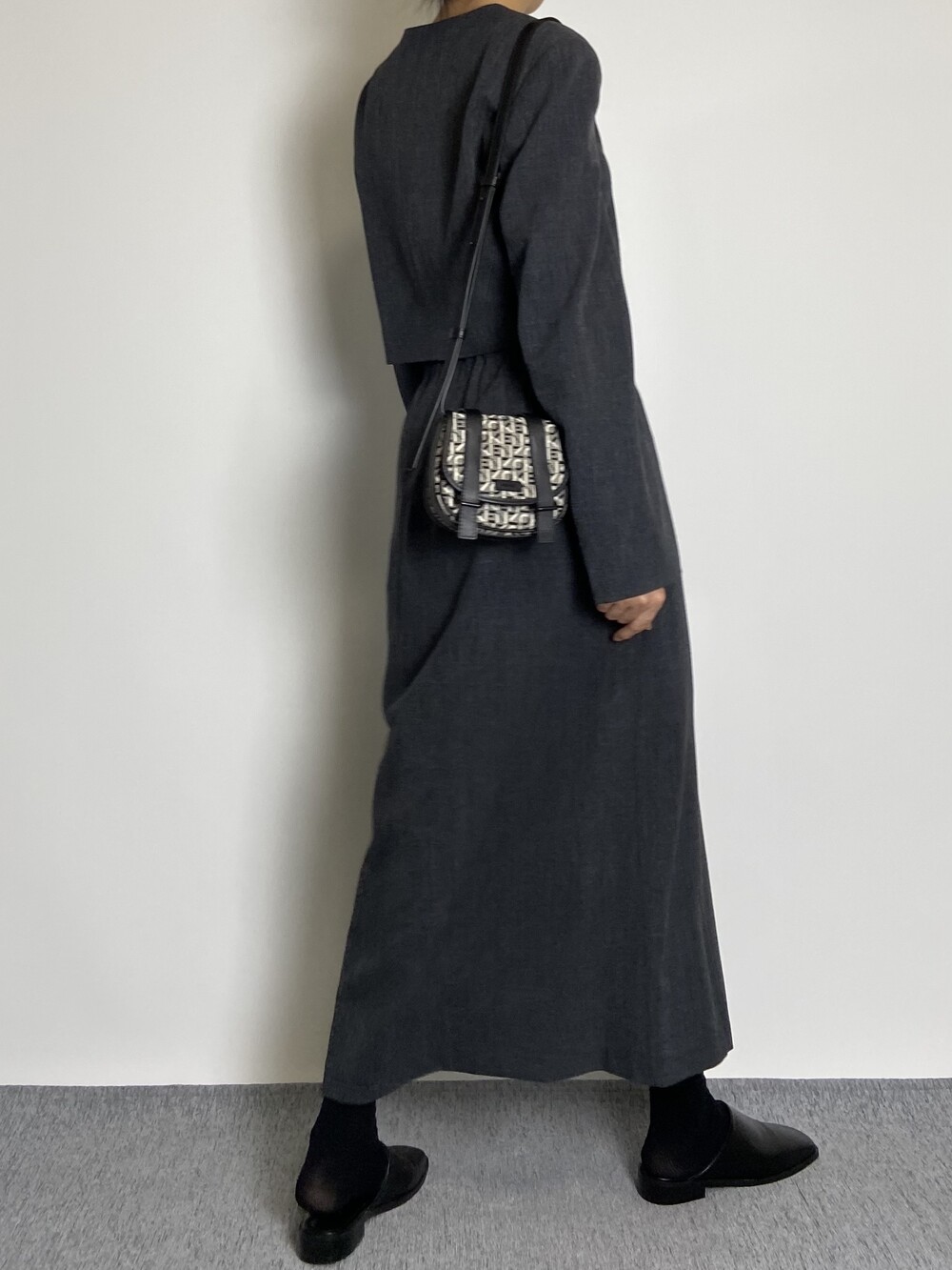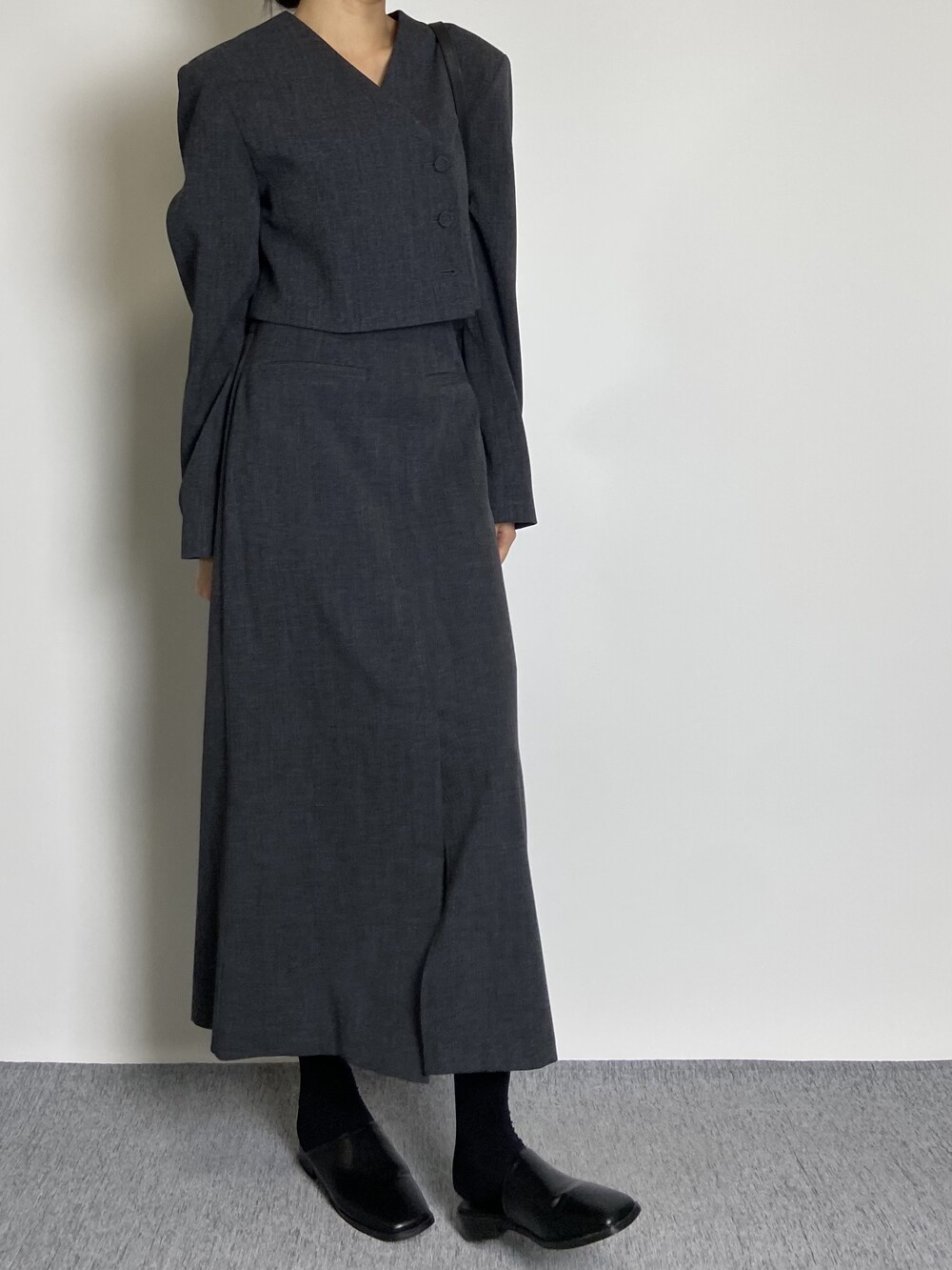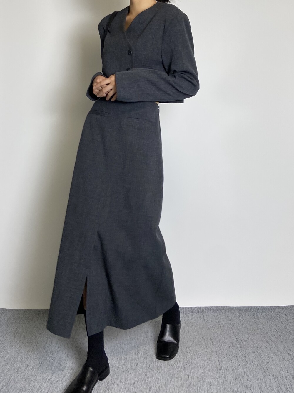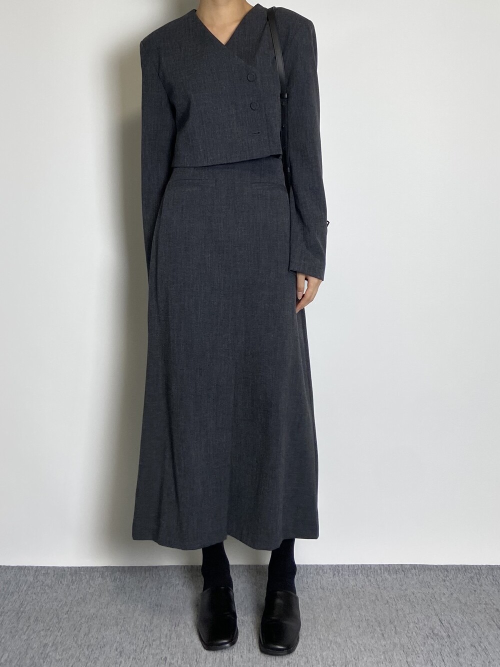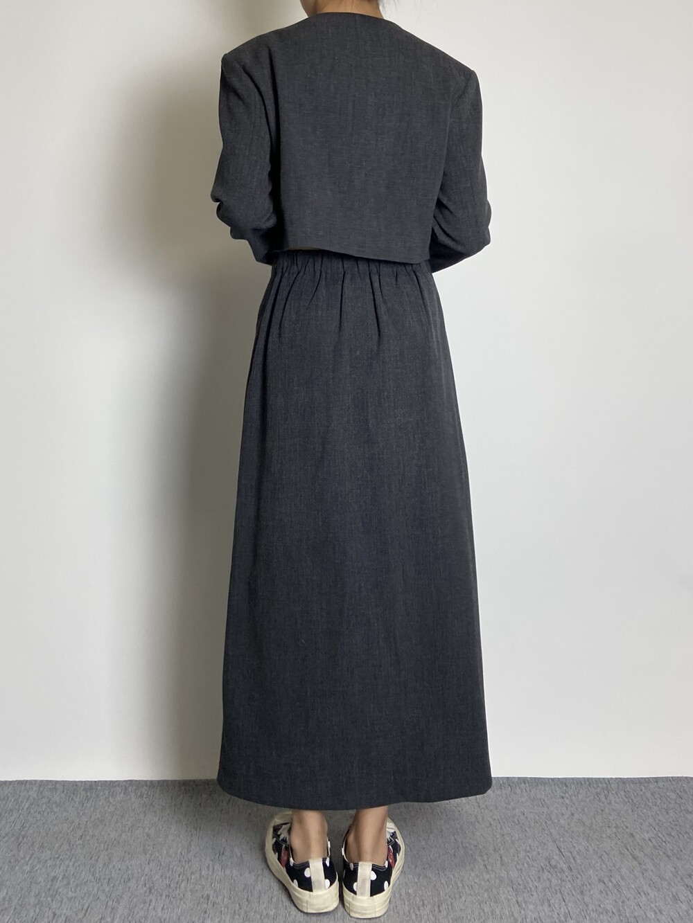밀키 노카라 크롭 자켓 스커트 셋업 _253