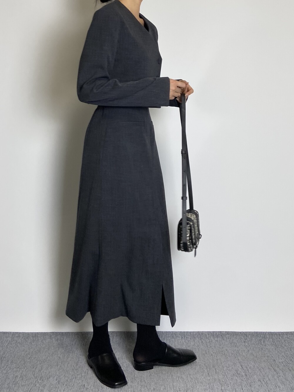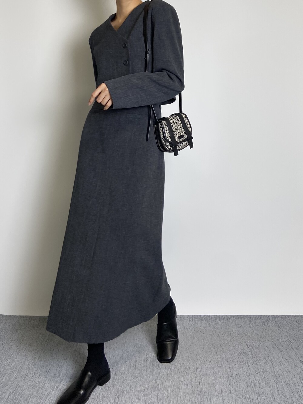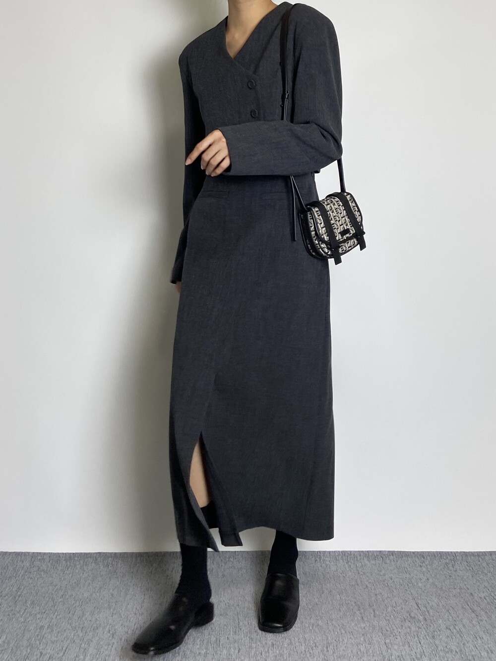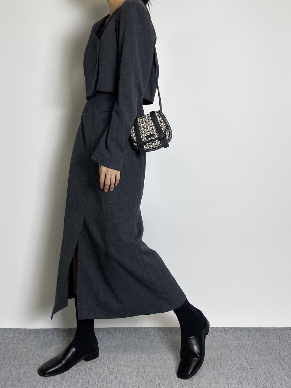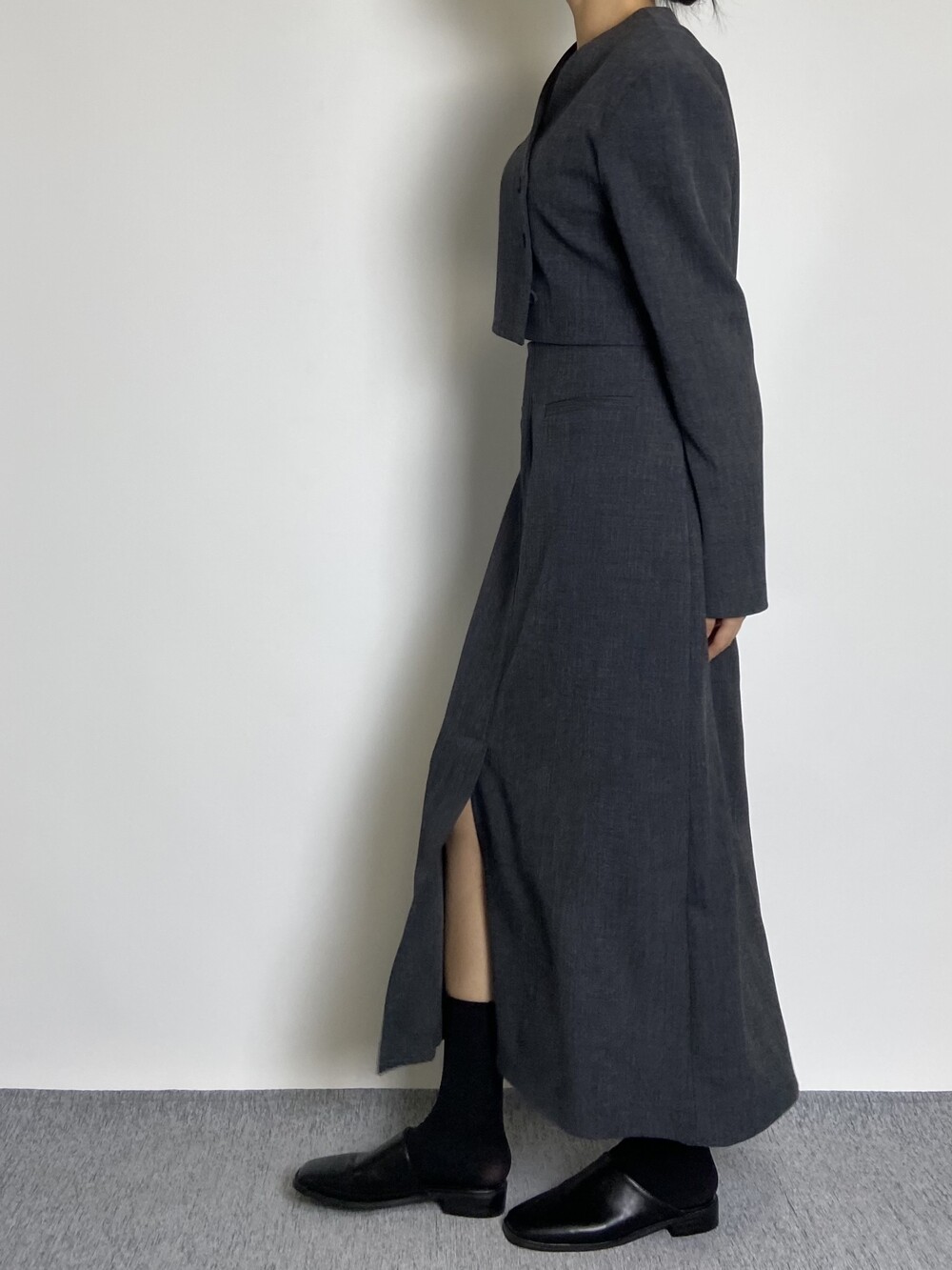 밀키 노카라 크롭 자켓 스커트 셋업 _253