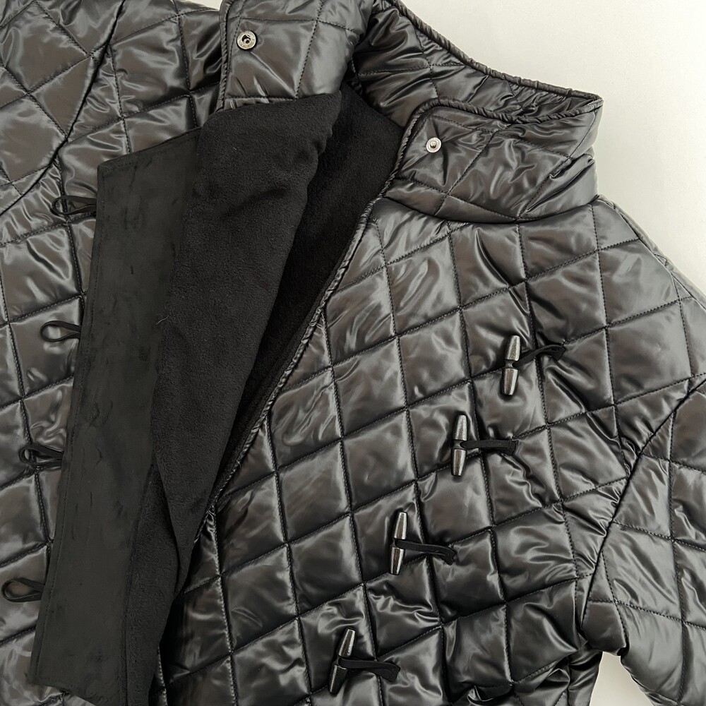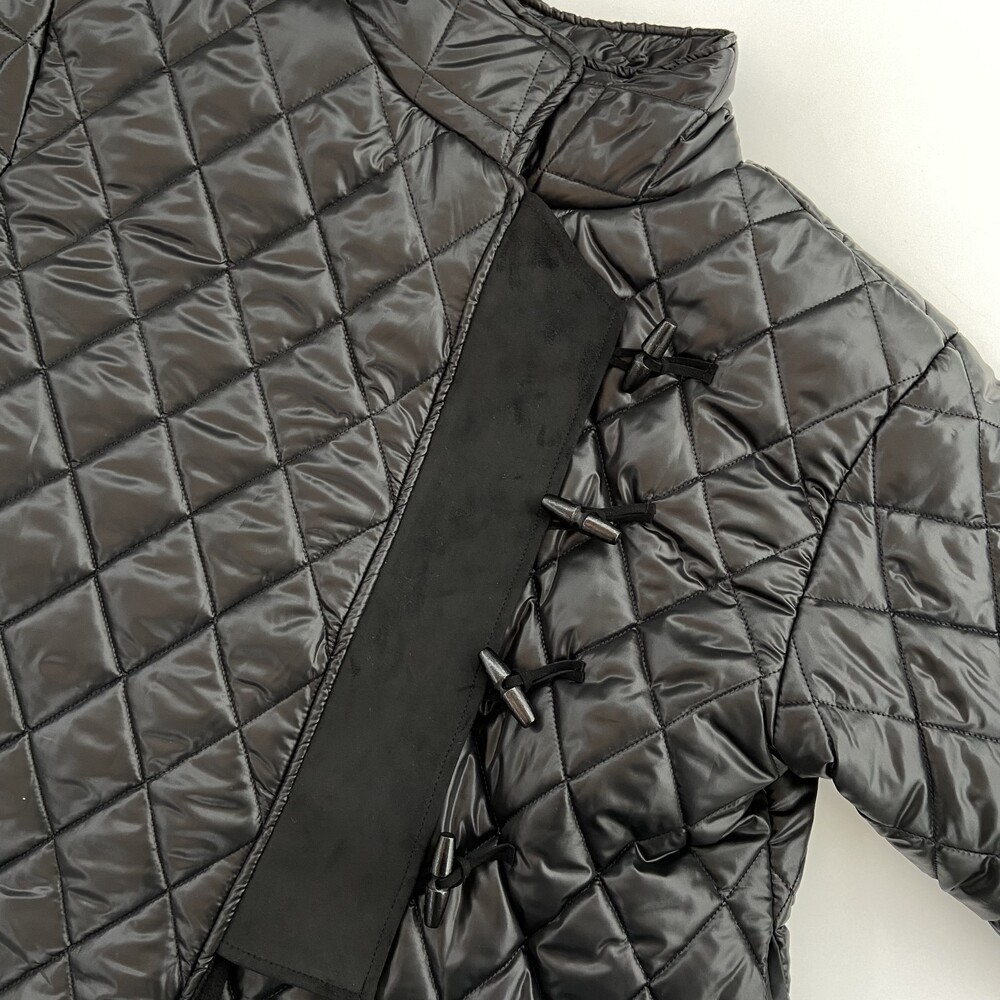 하이넥 부분 버튼과 더플 여밈 디테일로 유니크한 패딩입니다.