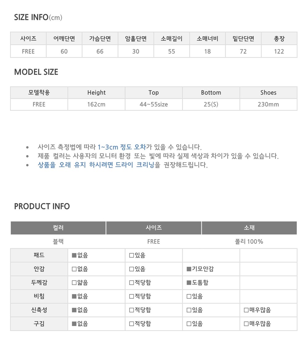 맥시 기장에 오버핏으로 남녀 공용 착용 가능하며