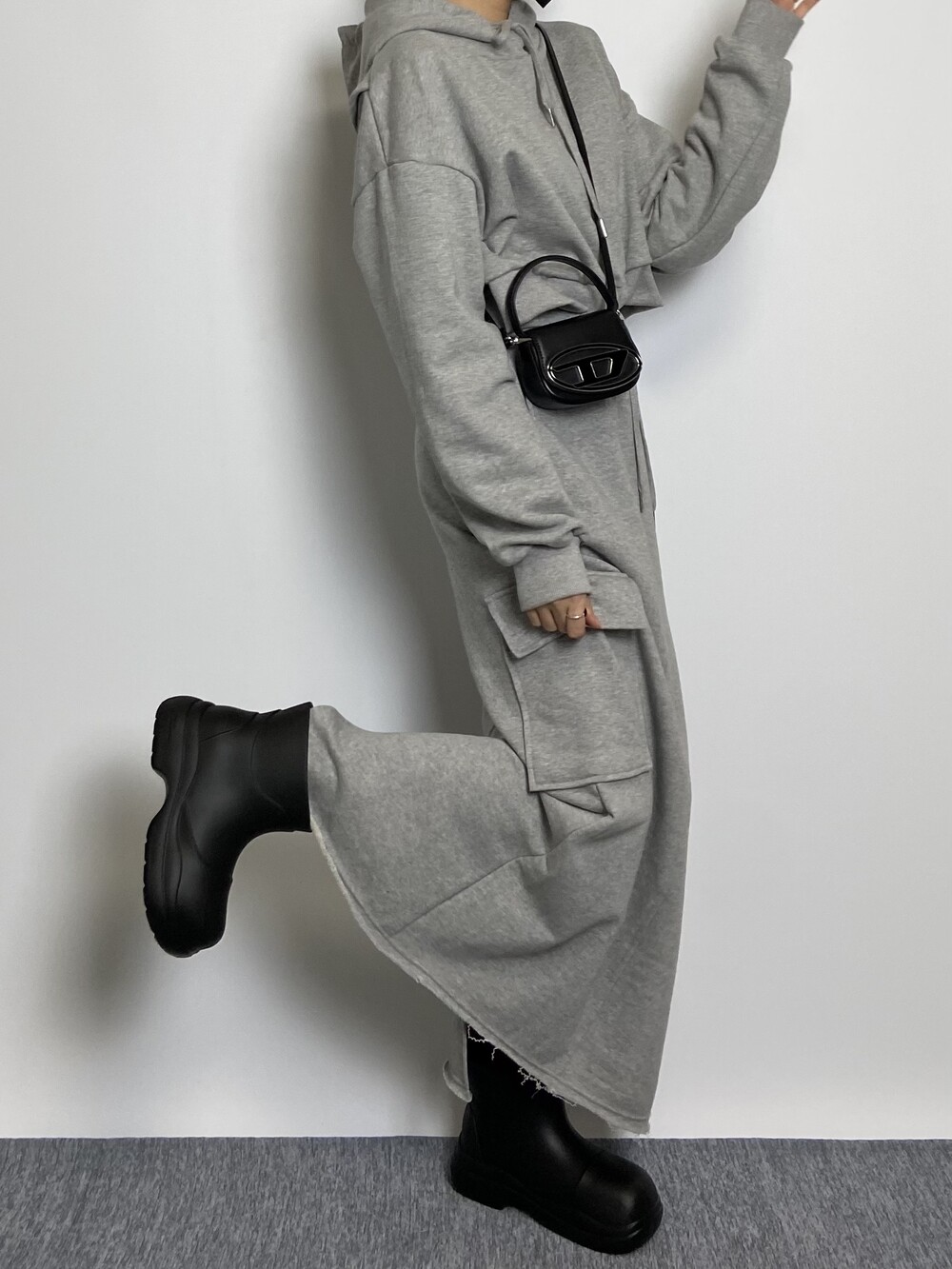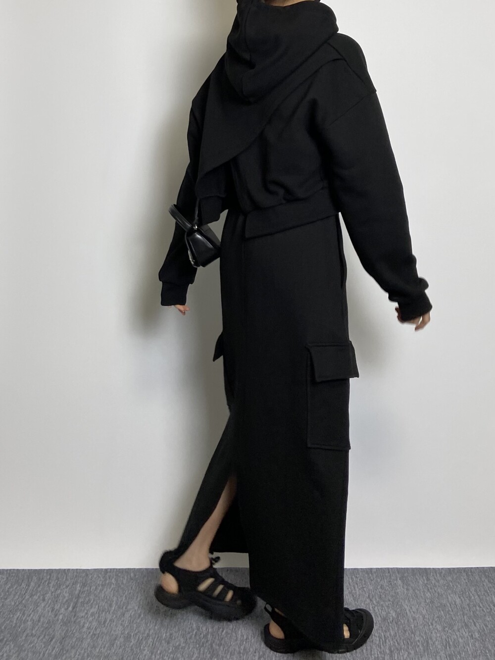 뒤트임 포인트와 넉넉한 후드 사이즈로 착용 시에도 이쁜 핏으로 연출됩니다.