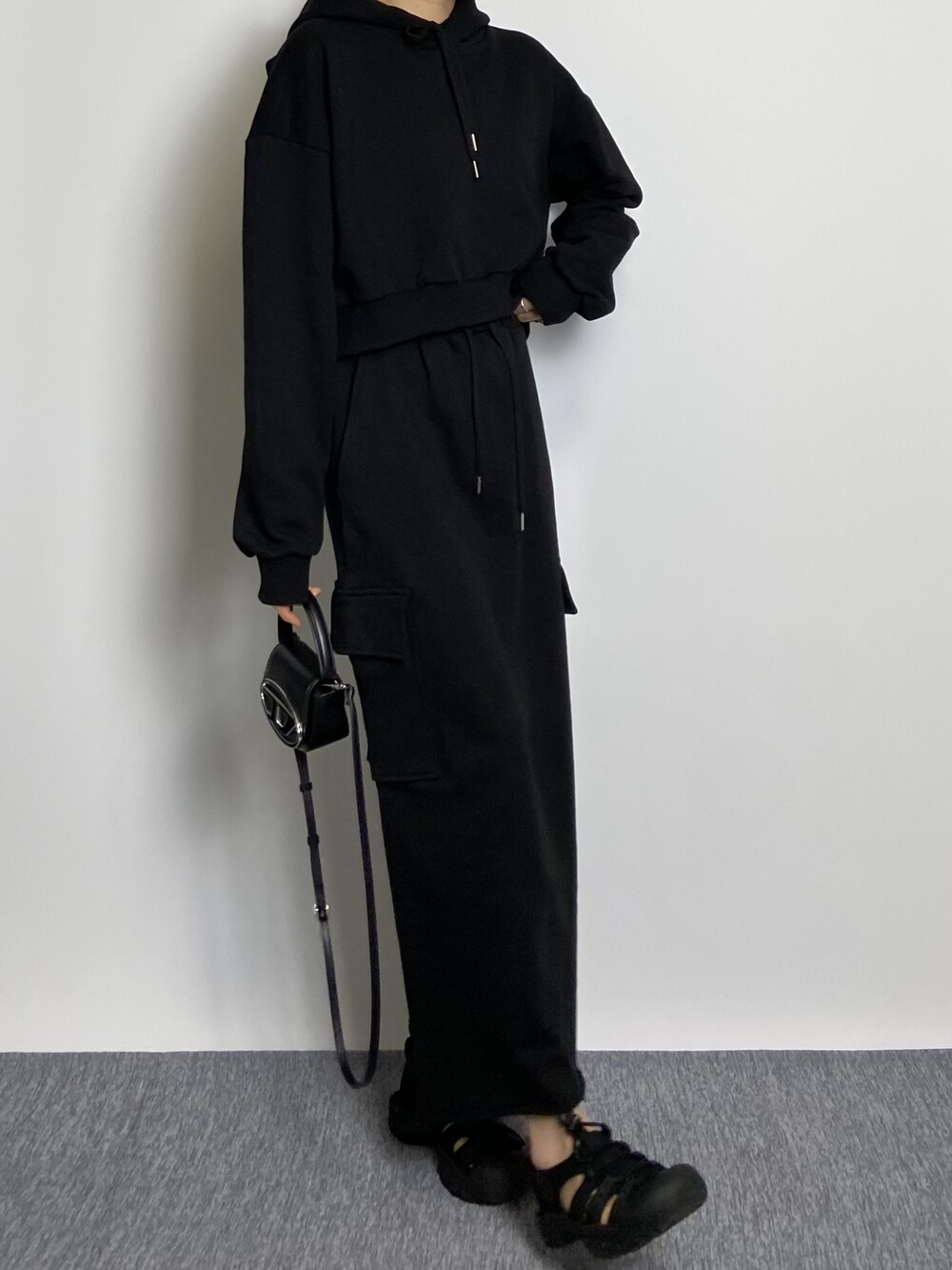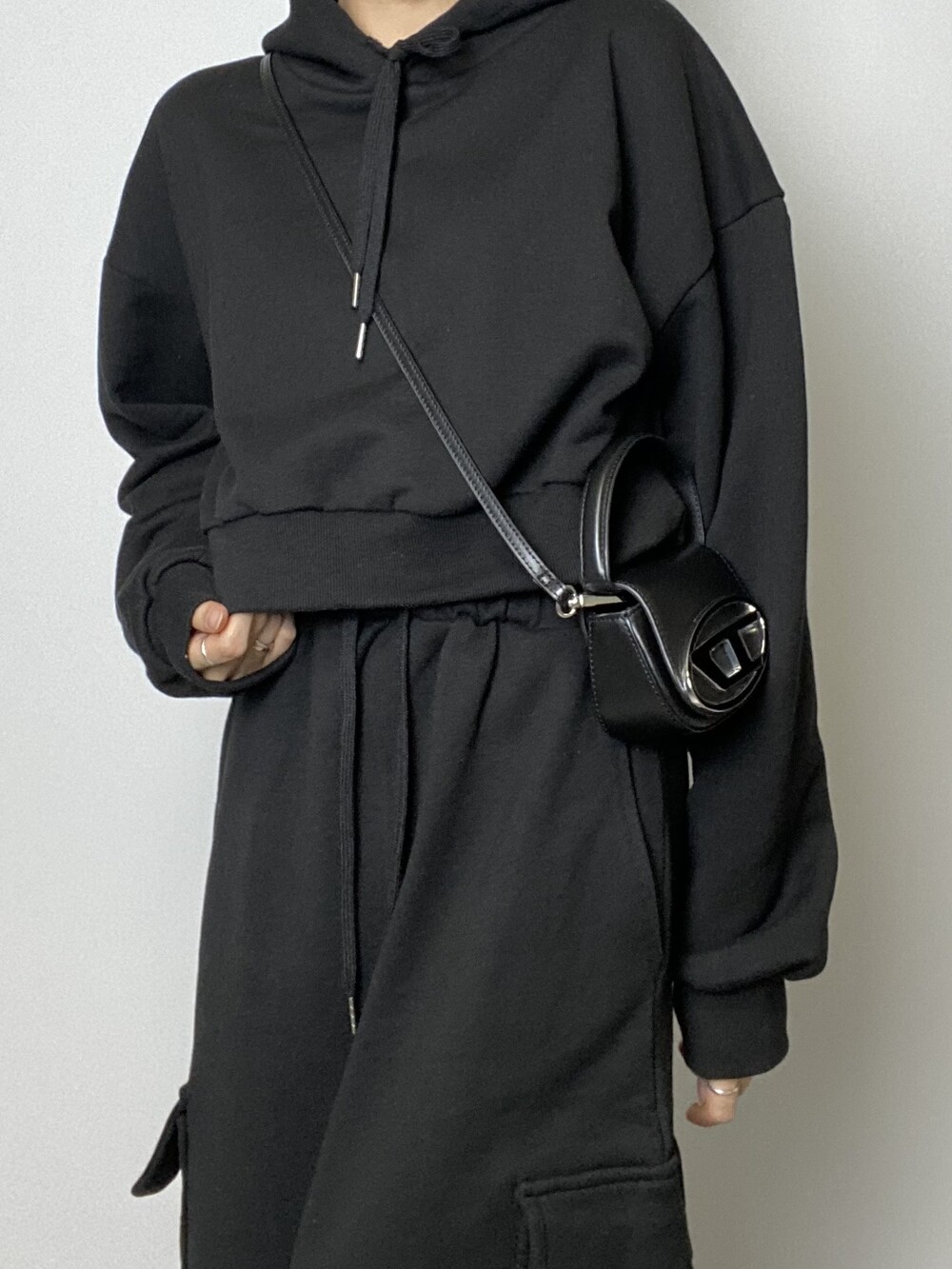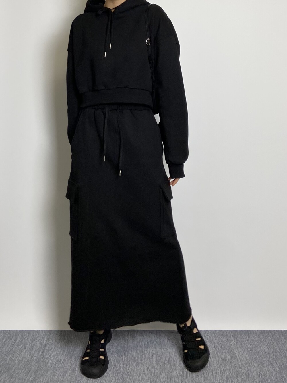 [세트할인]엑시 트임 크롭 후드 티셔츠 2color _318