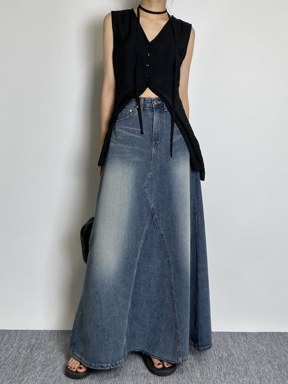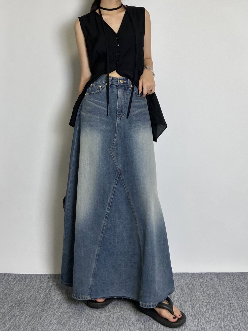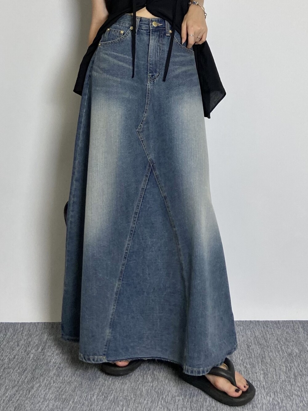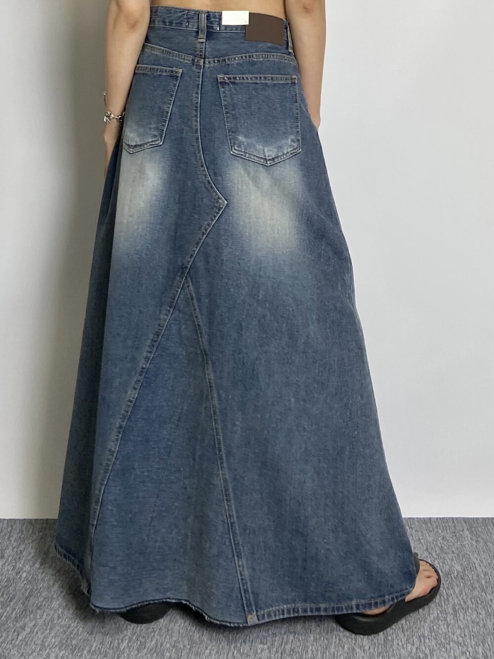 A라인으로 떨어지는 와이드 핏에 빈티지 워싱으로