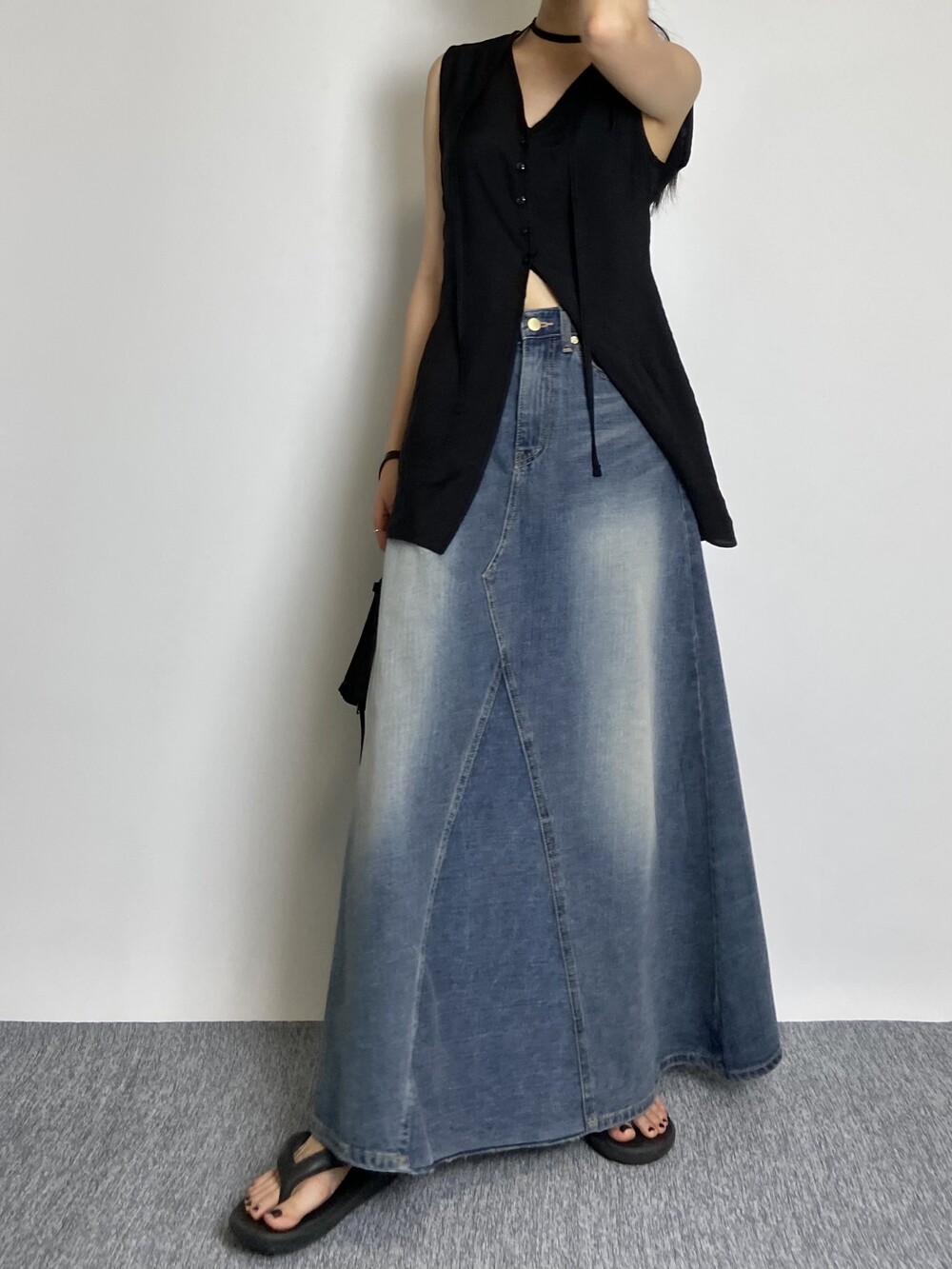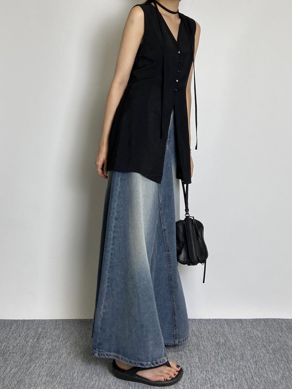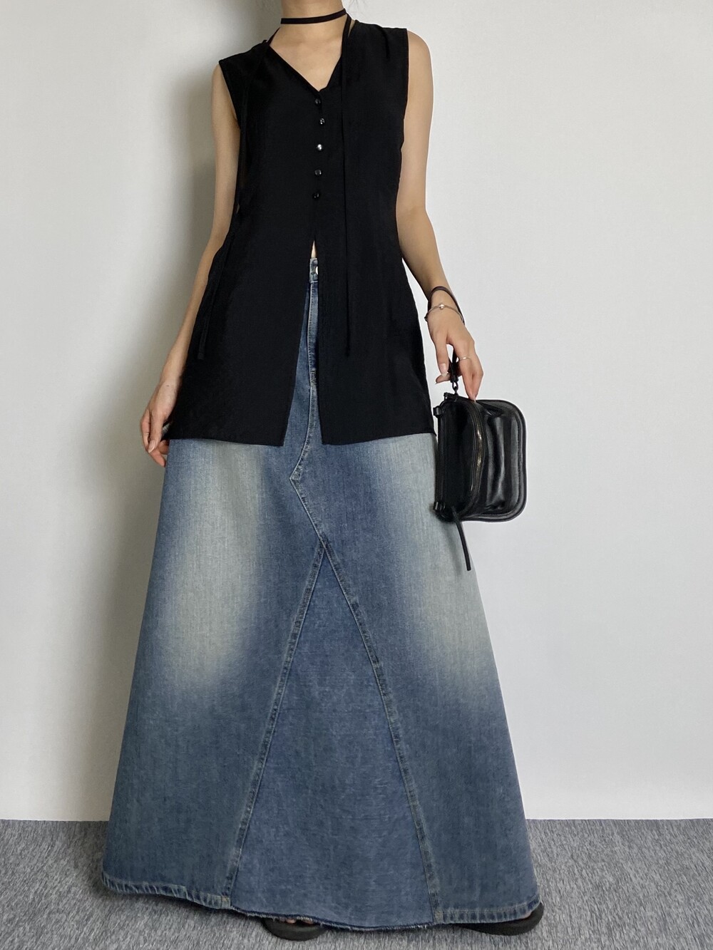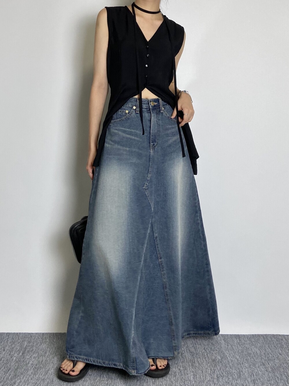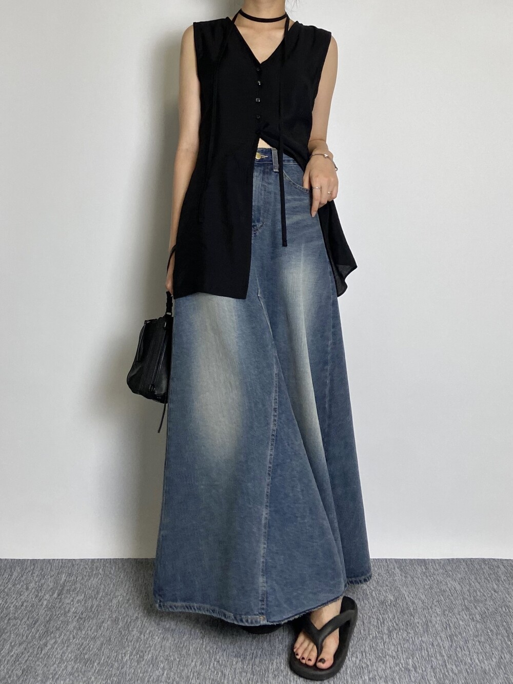 A라인으로 떨어지는 와이드 핏에 빈티지 워싱으로