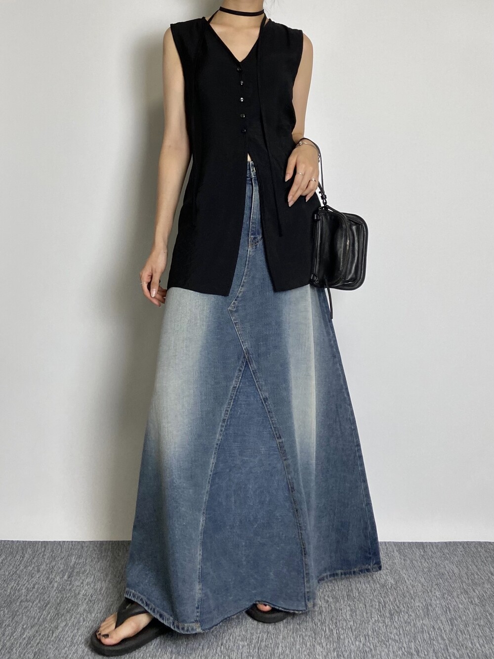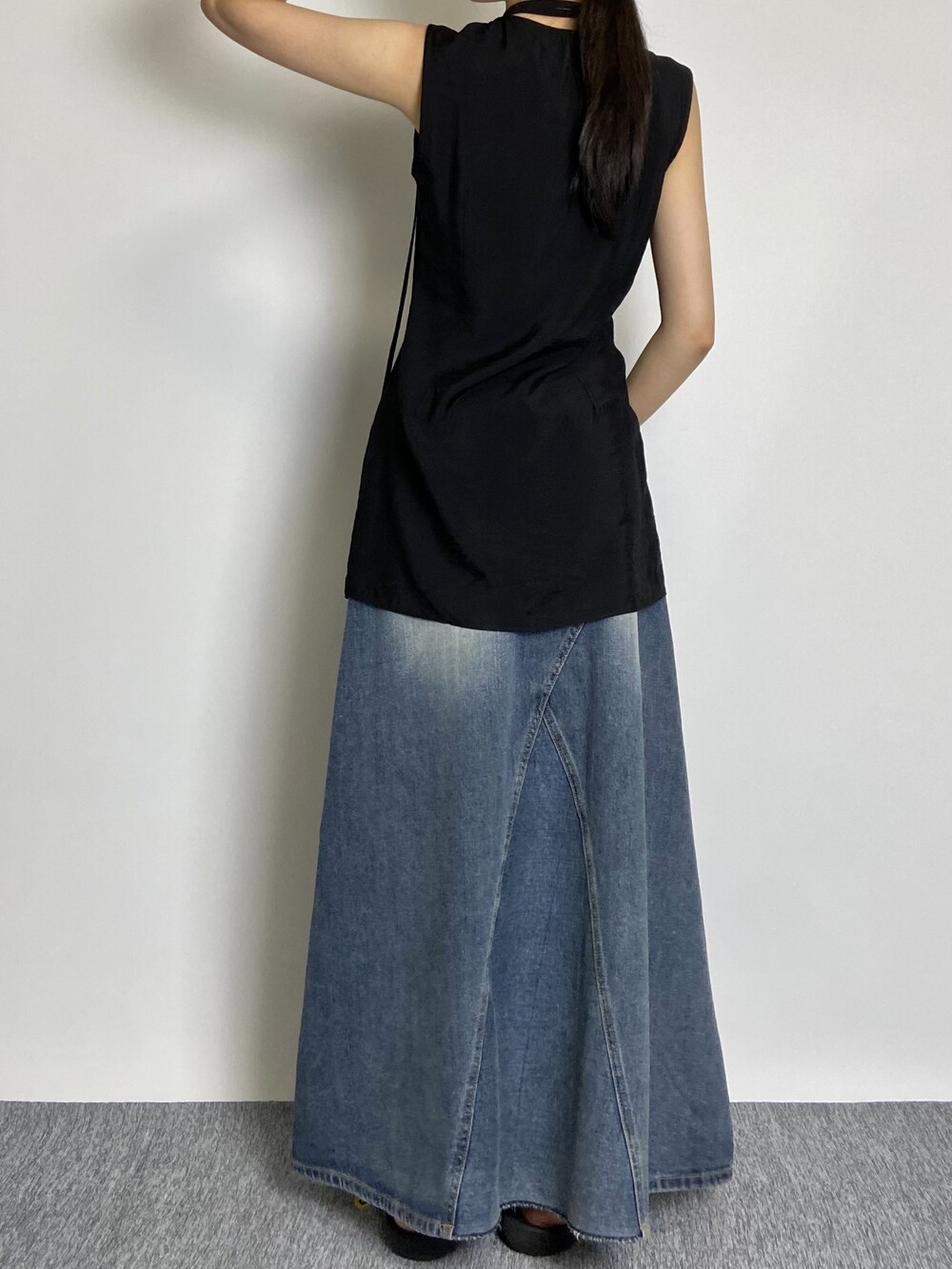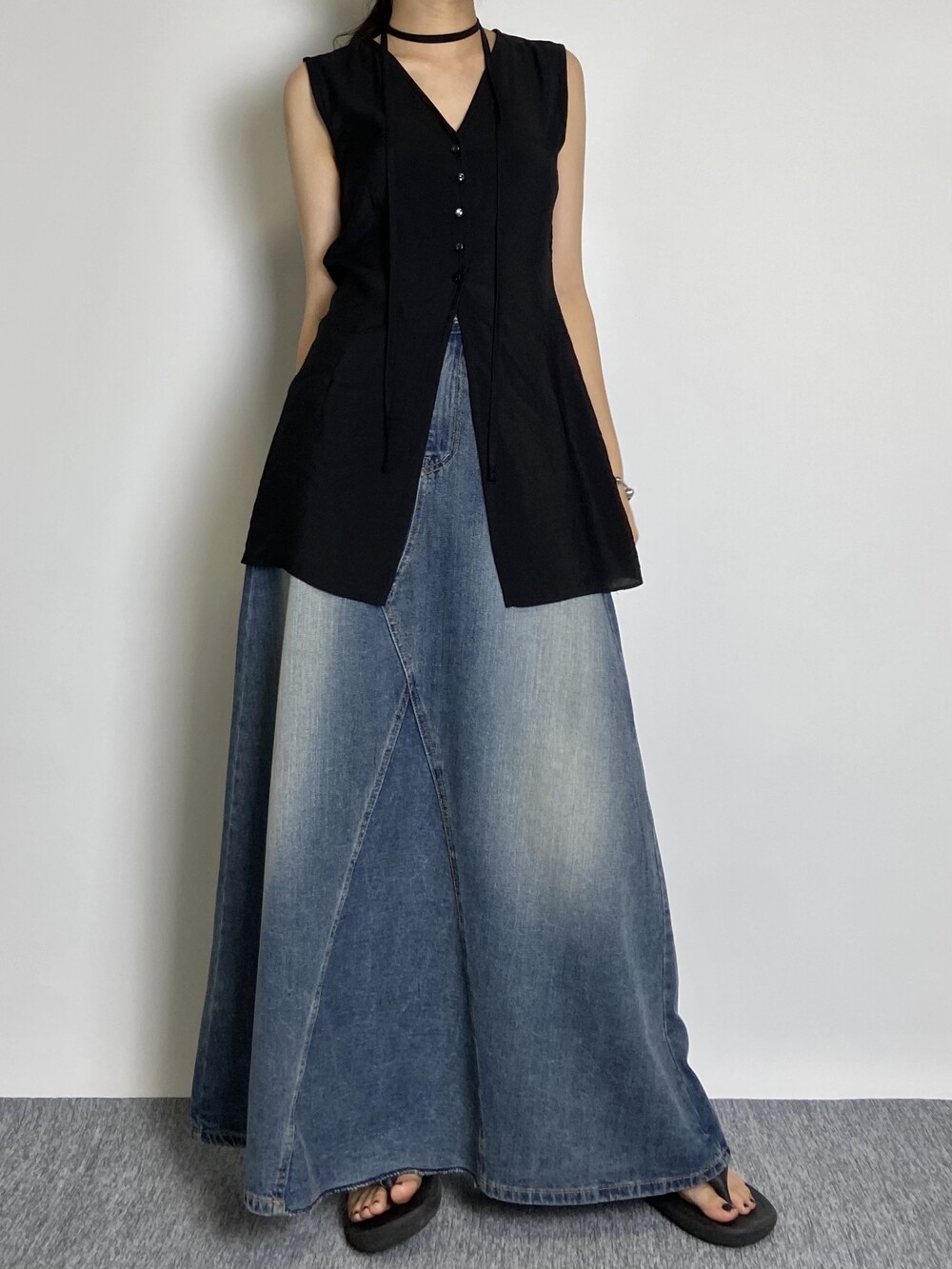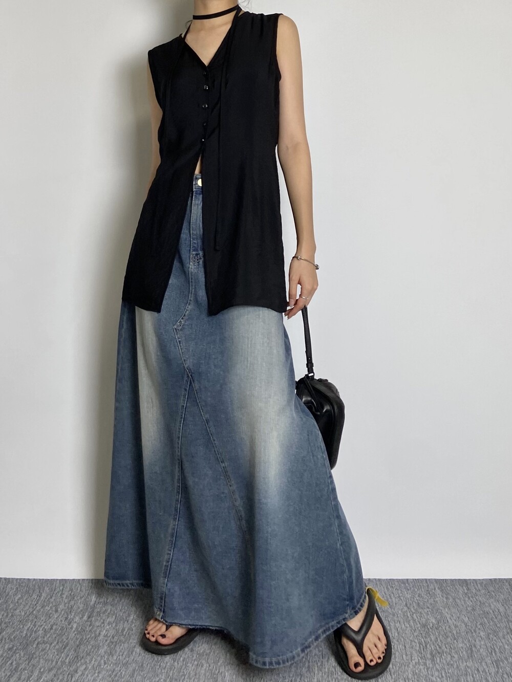 A라인으로 떨어지는 와이드 핏에 빈티지 워싱으로