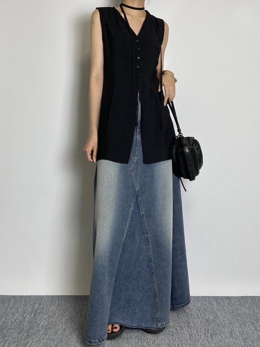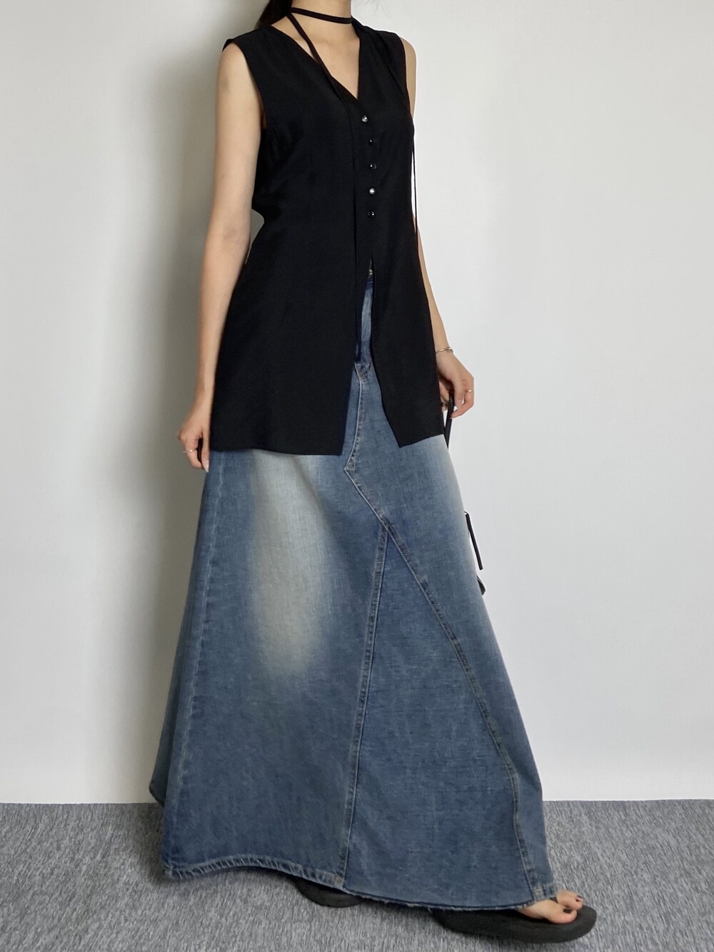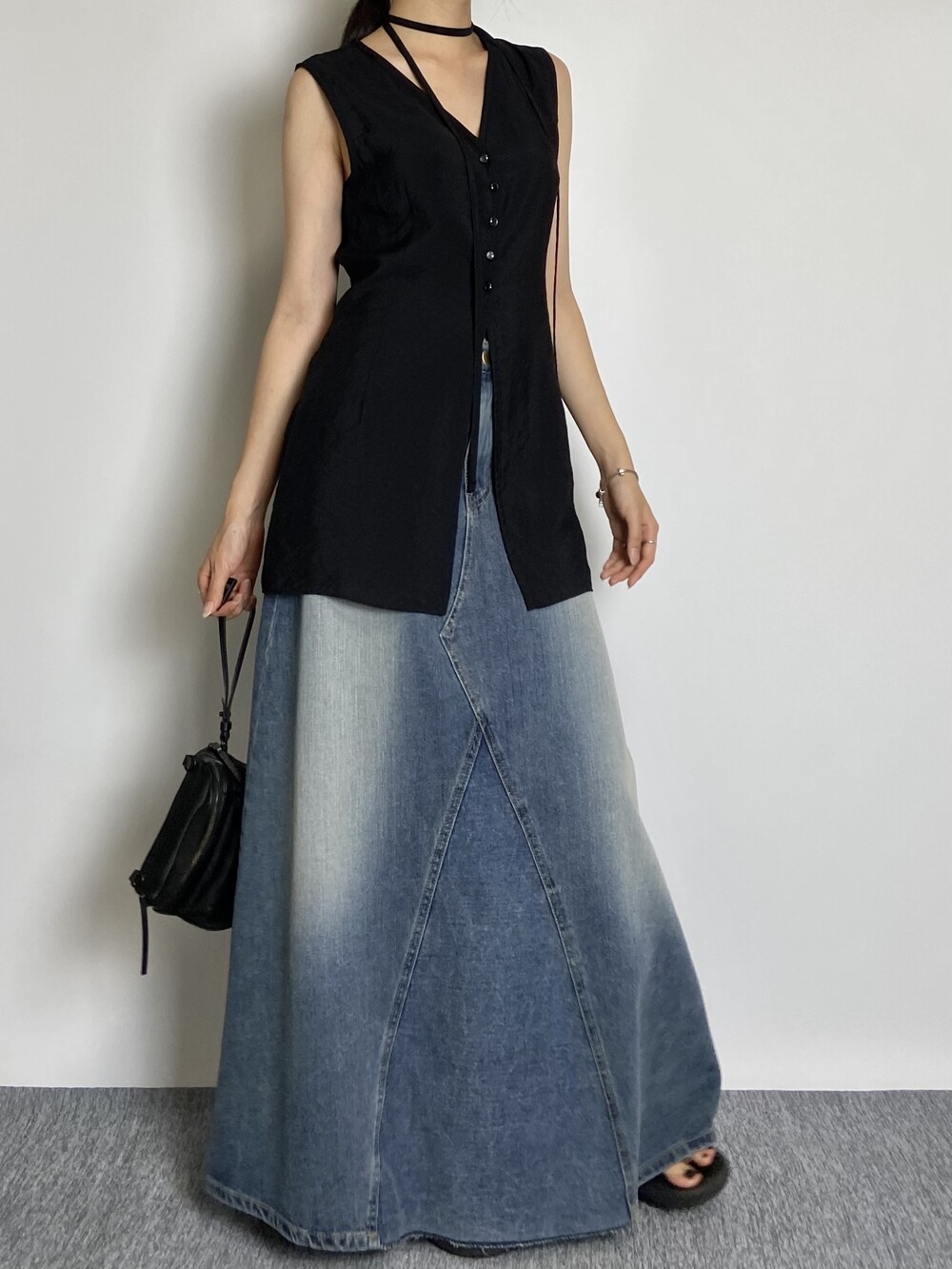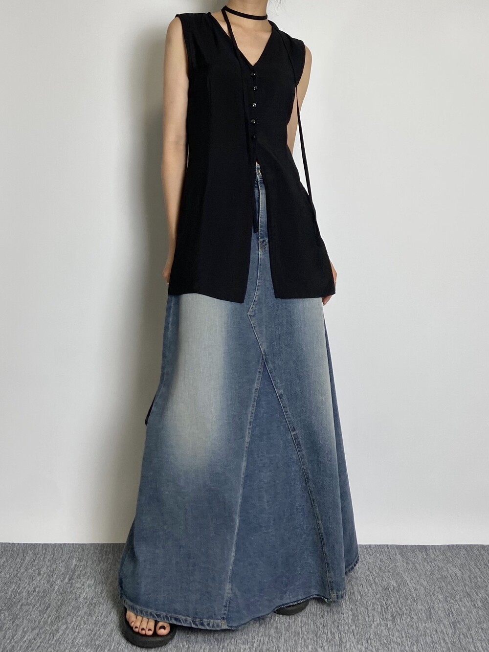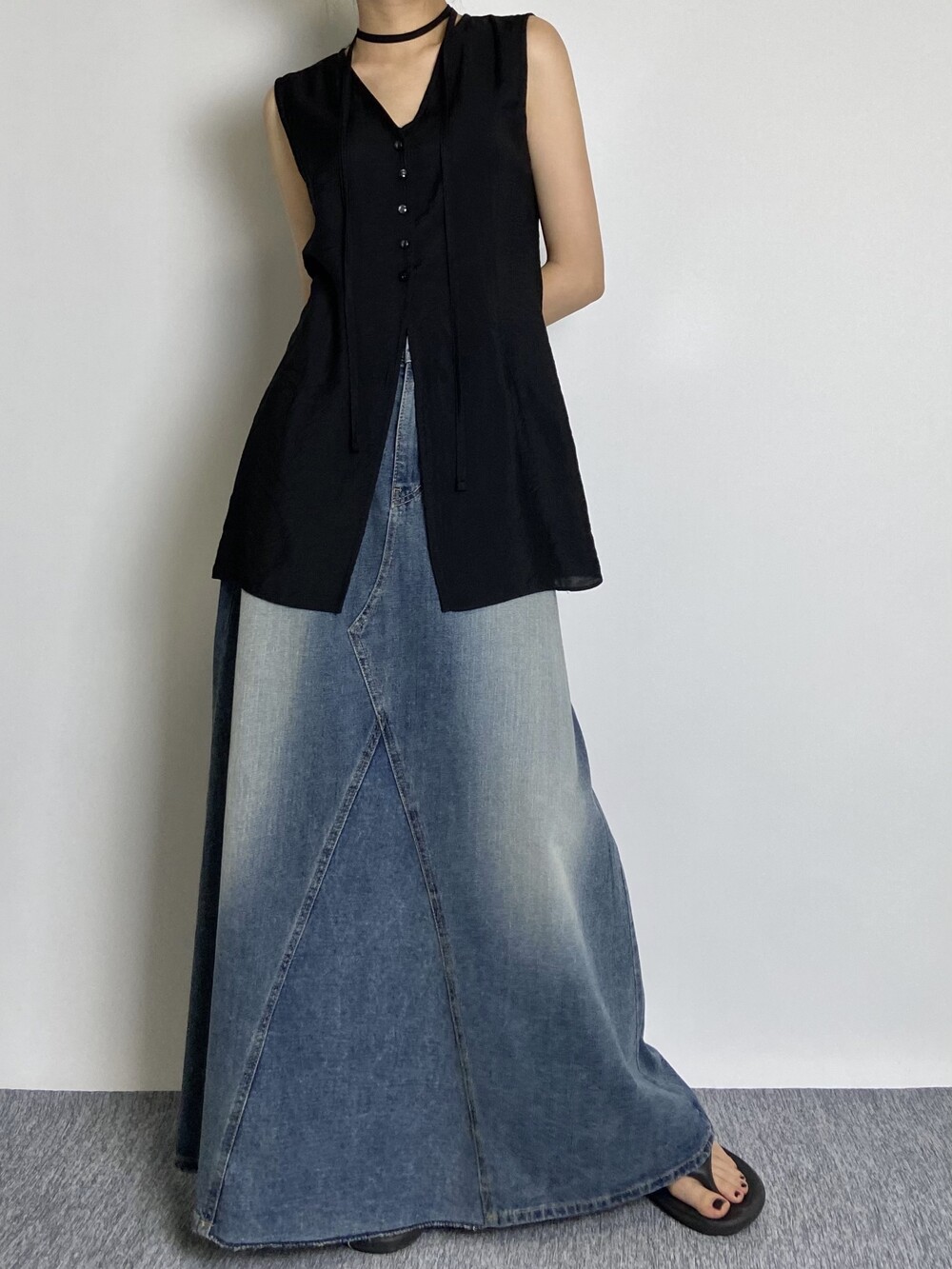 A라인으로 떨어지는 와이드 핏에 빈티지 워싱으로