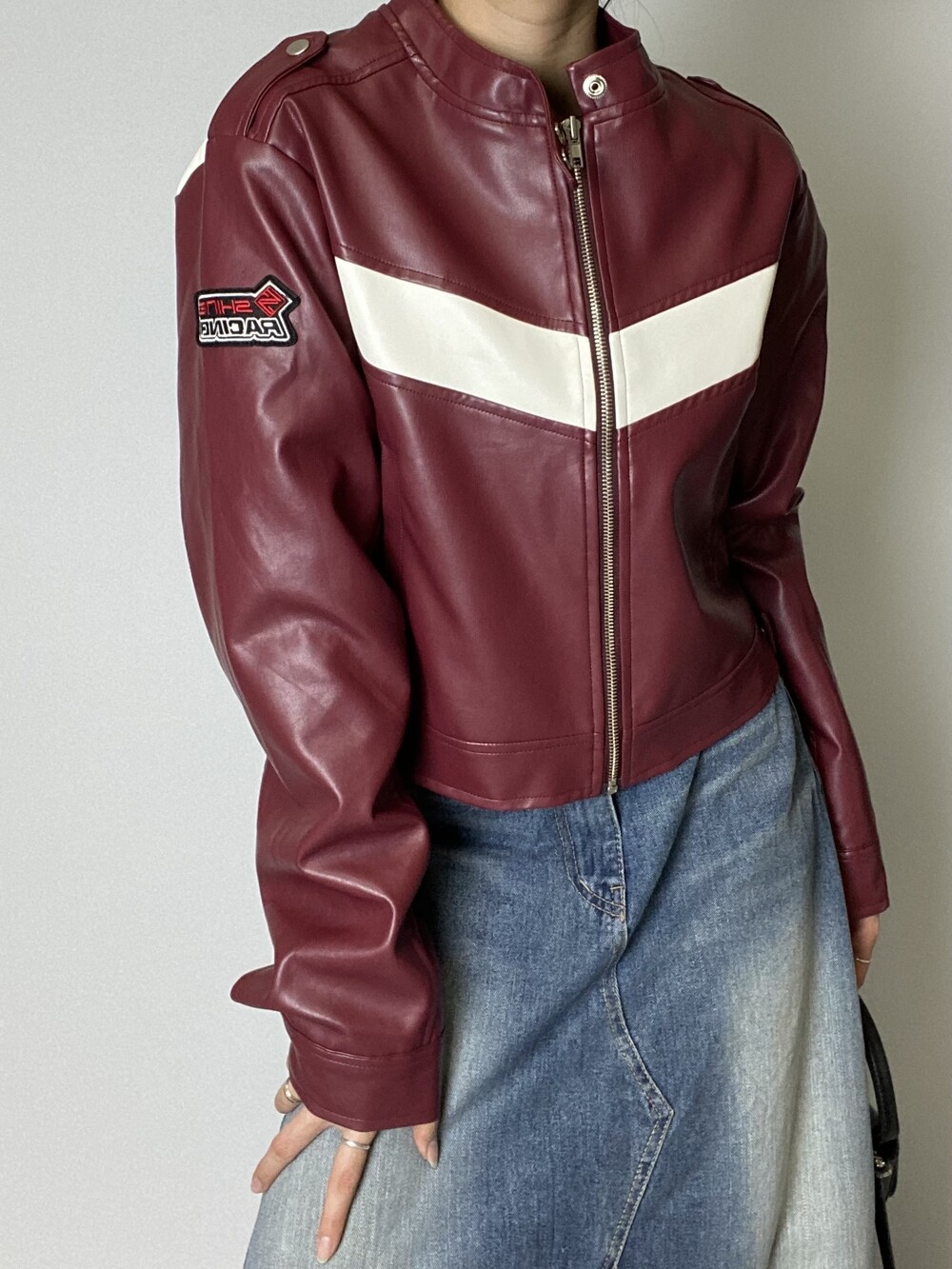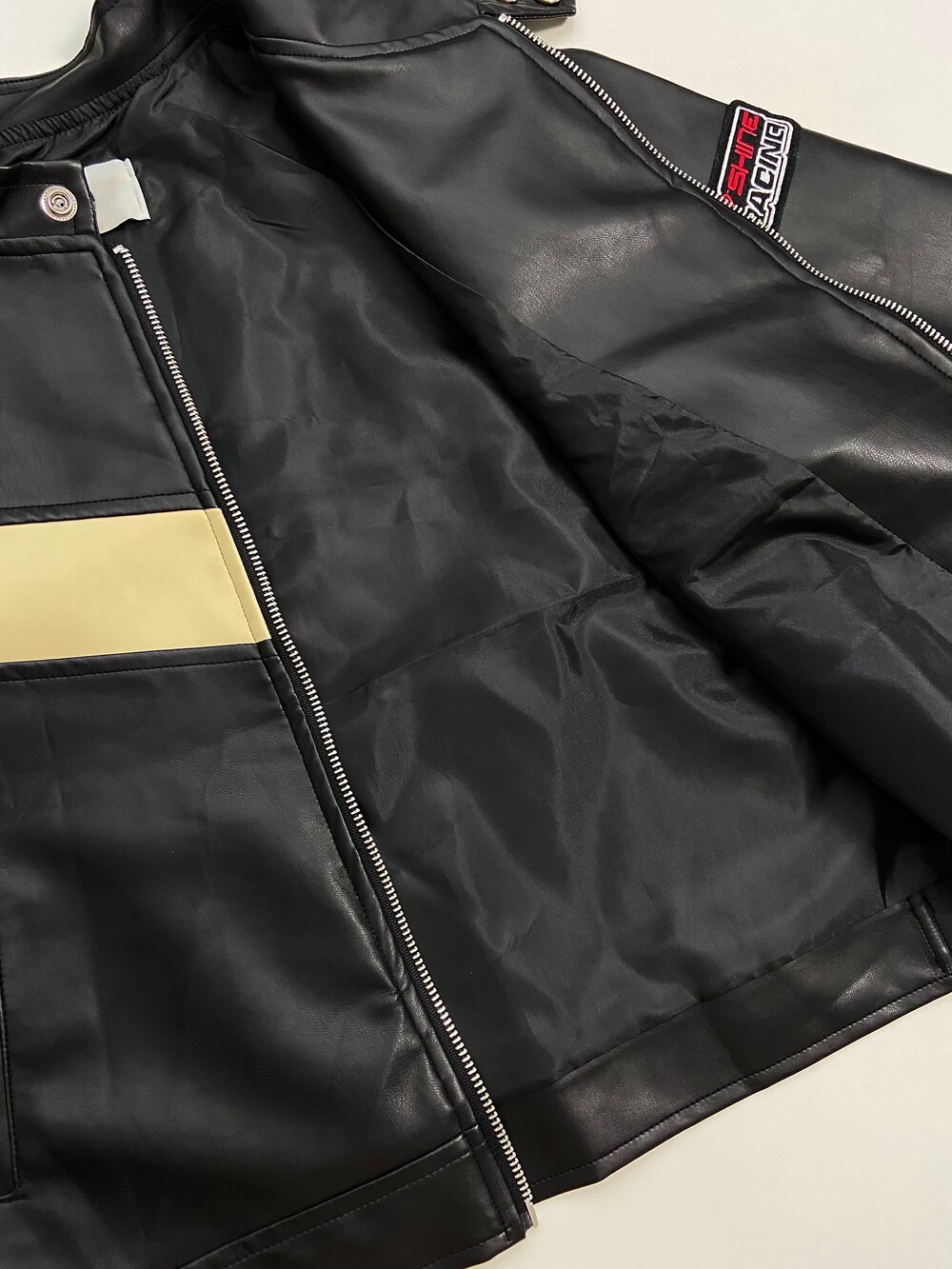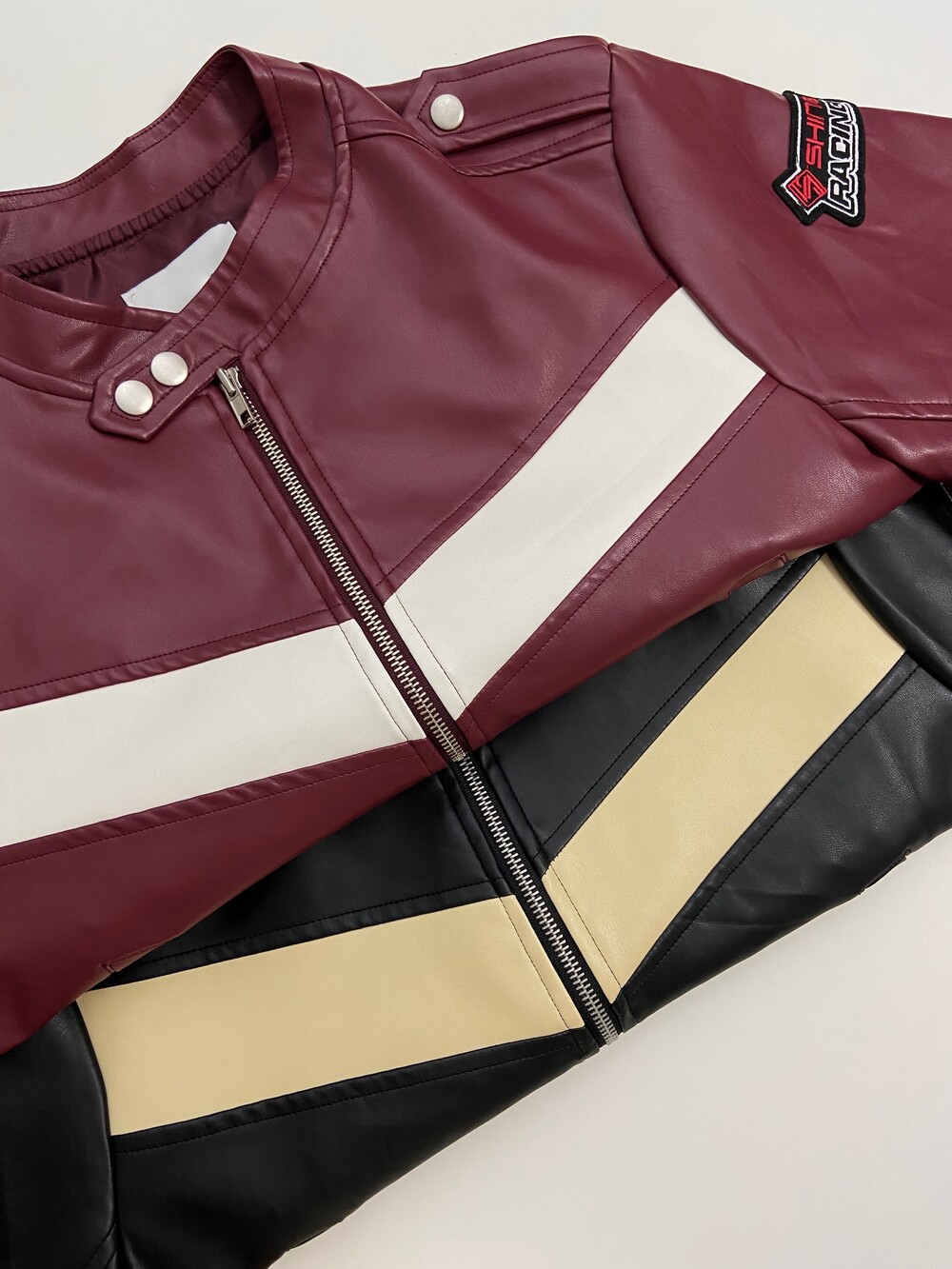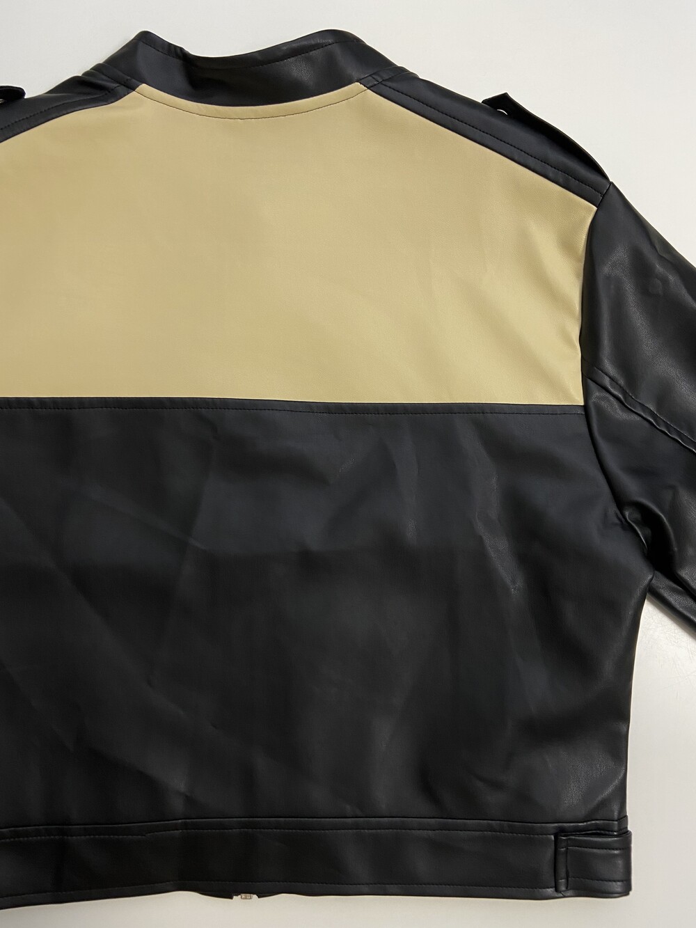 사이드포켓이 있으며 와펜과 스냅 버튼, 배색 디테일로