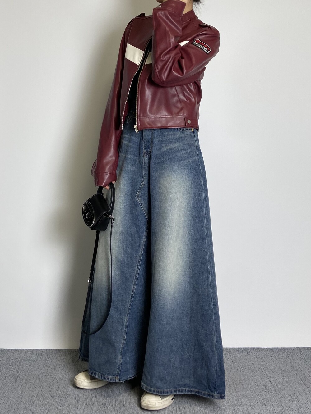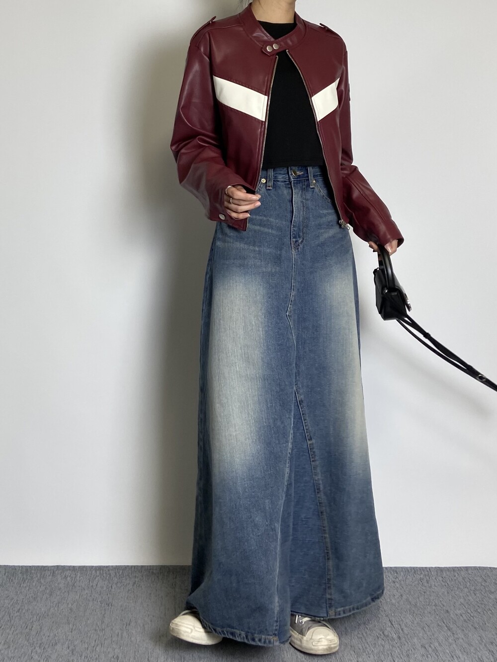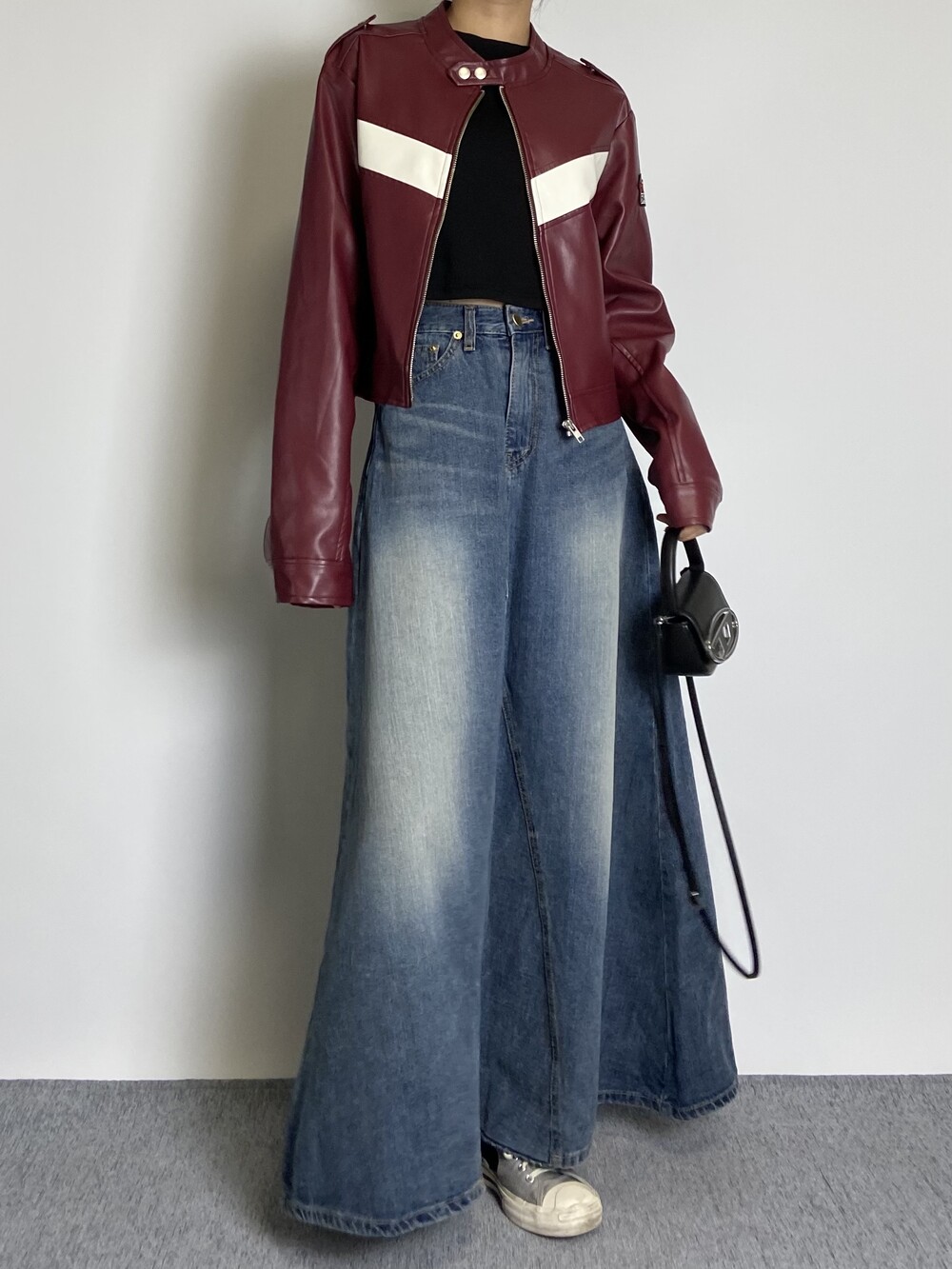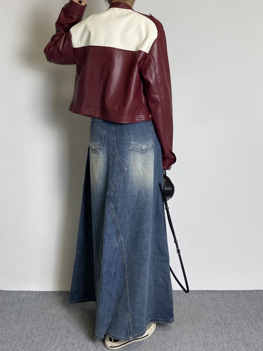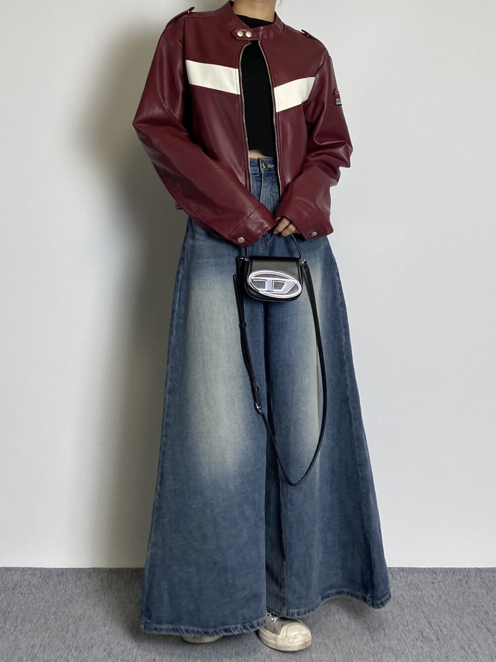 사이드포켓이 있으며 와펜과 스냅 버튼, 배색 디테일로