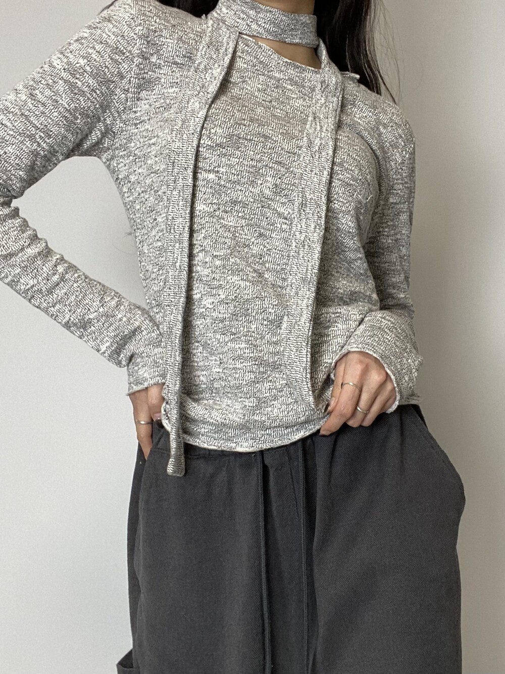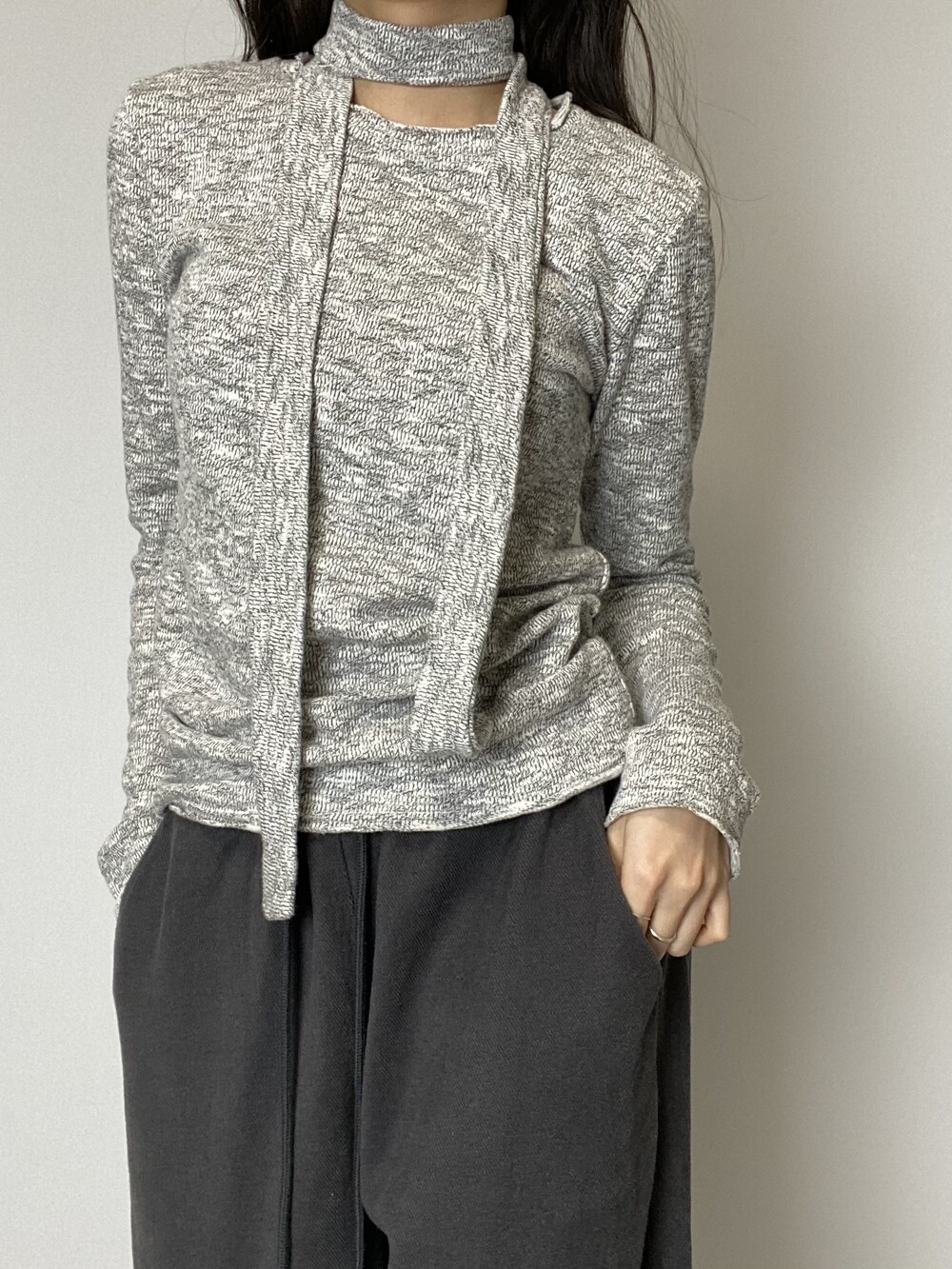 기모 안감으로 포근하며 타이 세트로 착용 가능한 티셔츠입니다.
