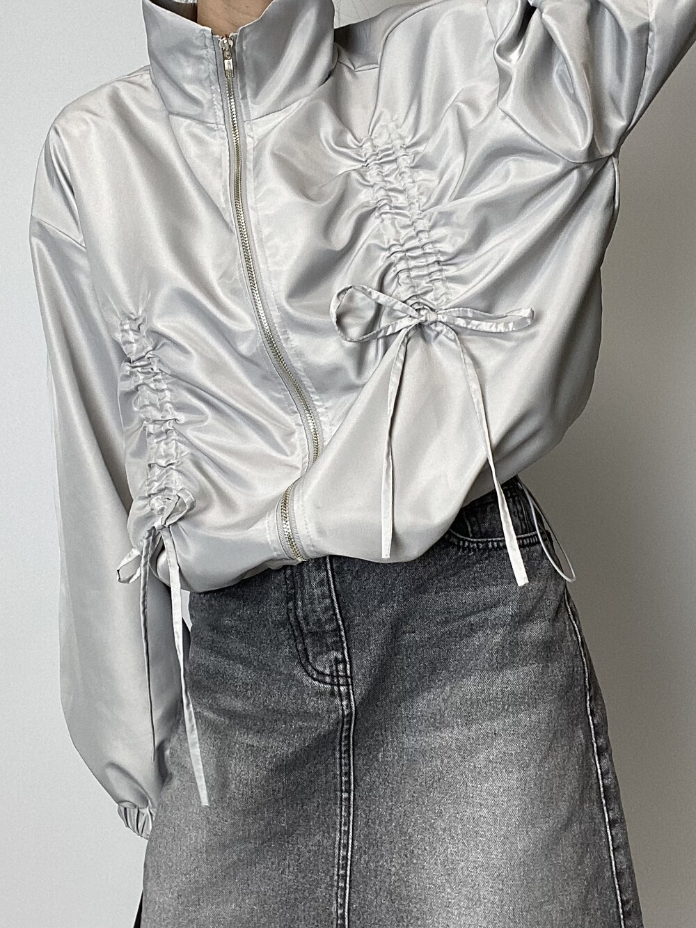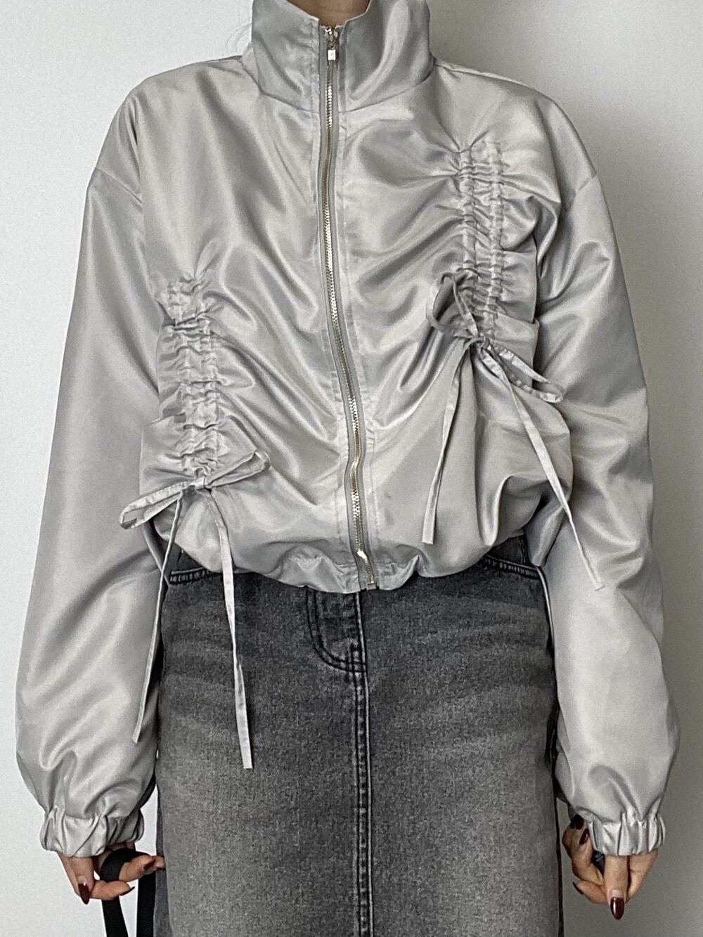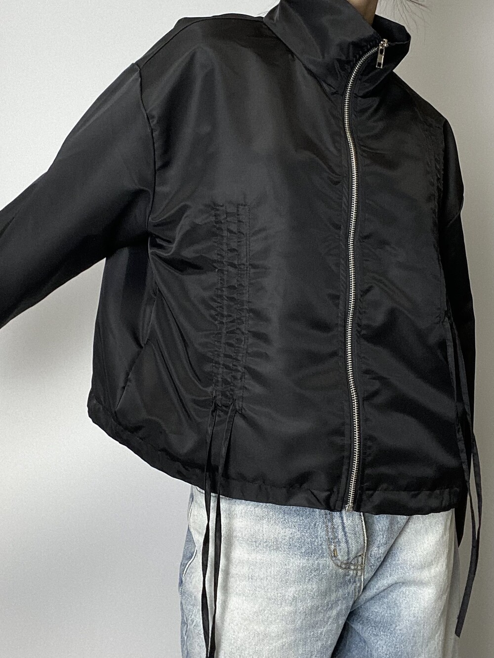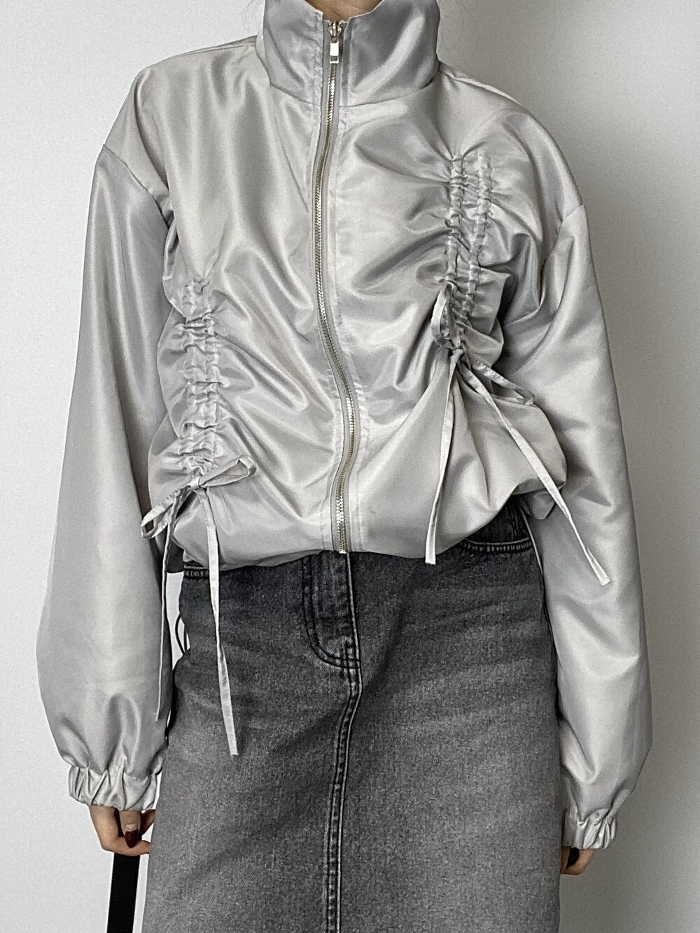 리본 디테일과 은은한 광택감으로 유니크한 윈드브레이커입니다.
