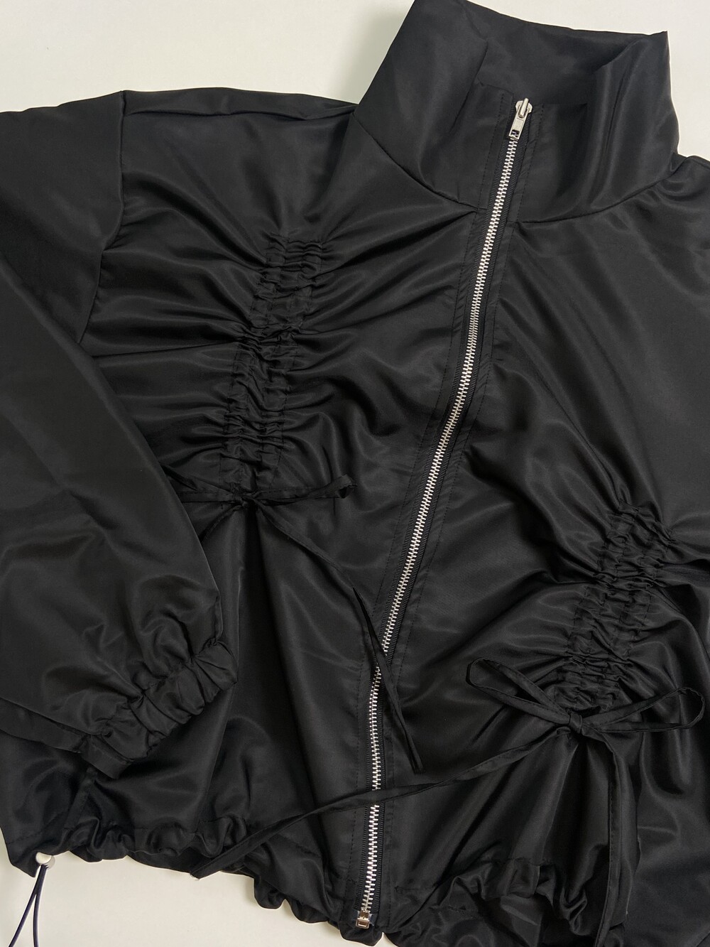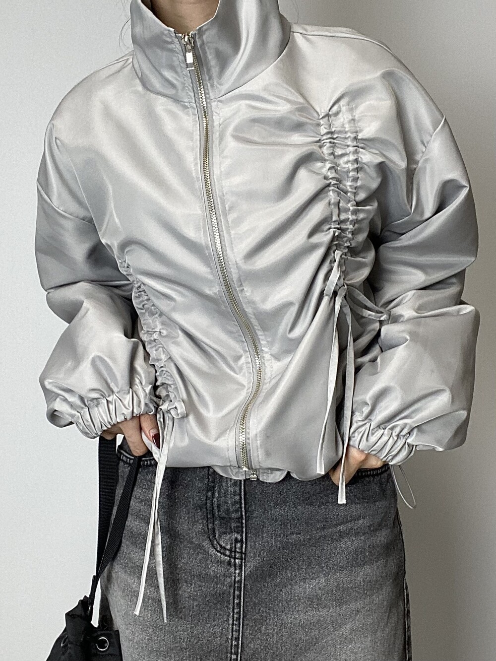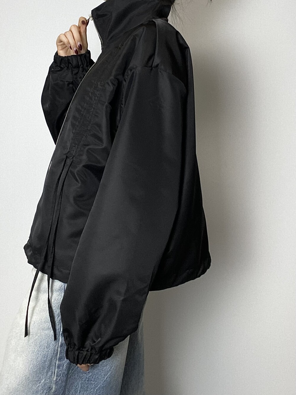 리본 디테일과 은은한 광택감으로 유니크한 윈드브레이커입니다.