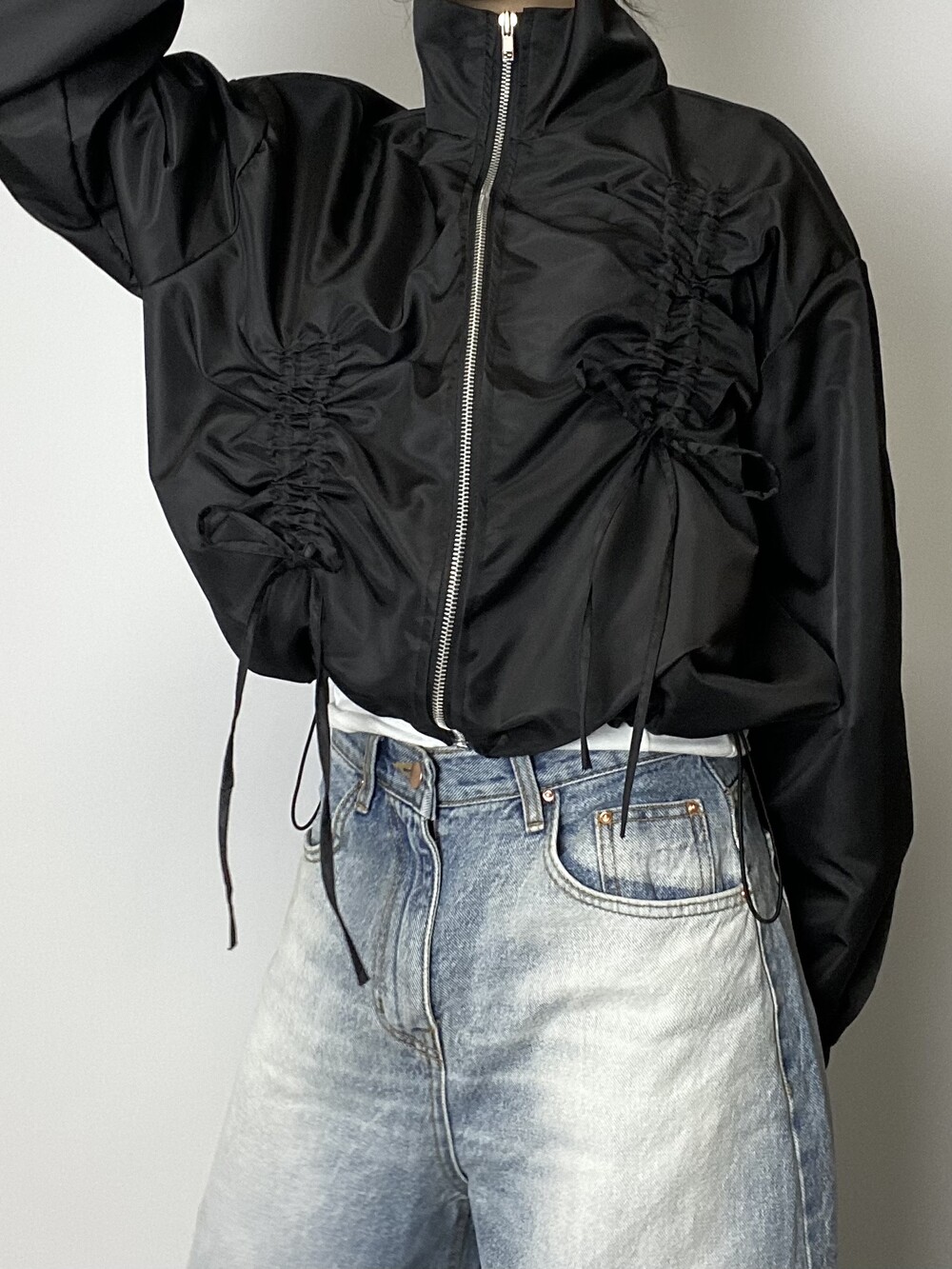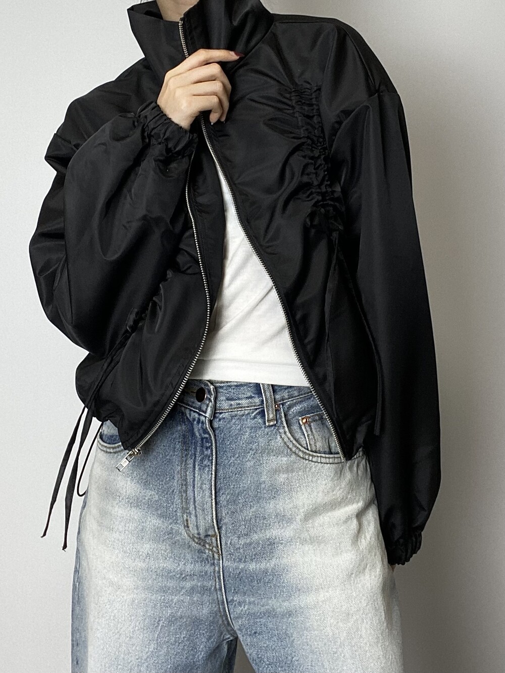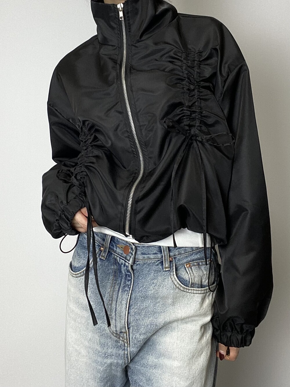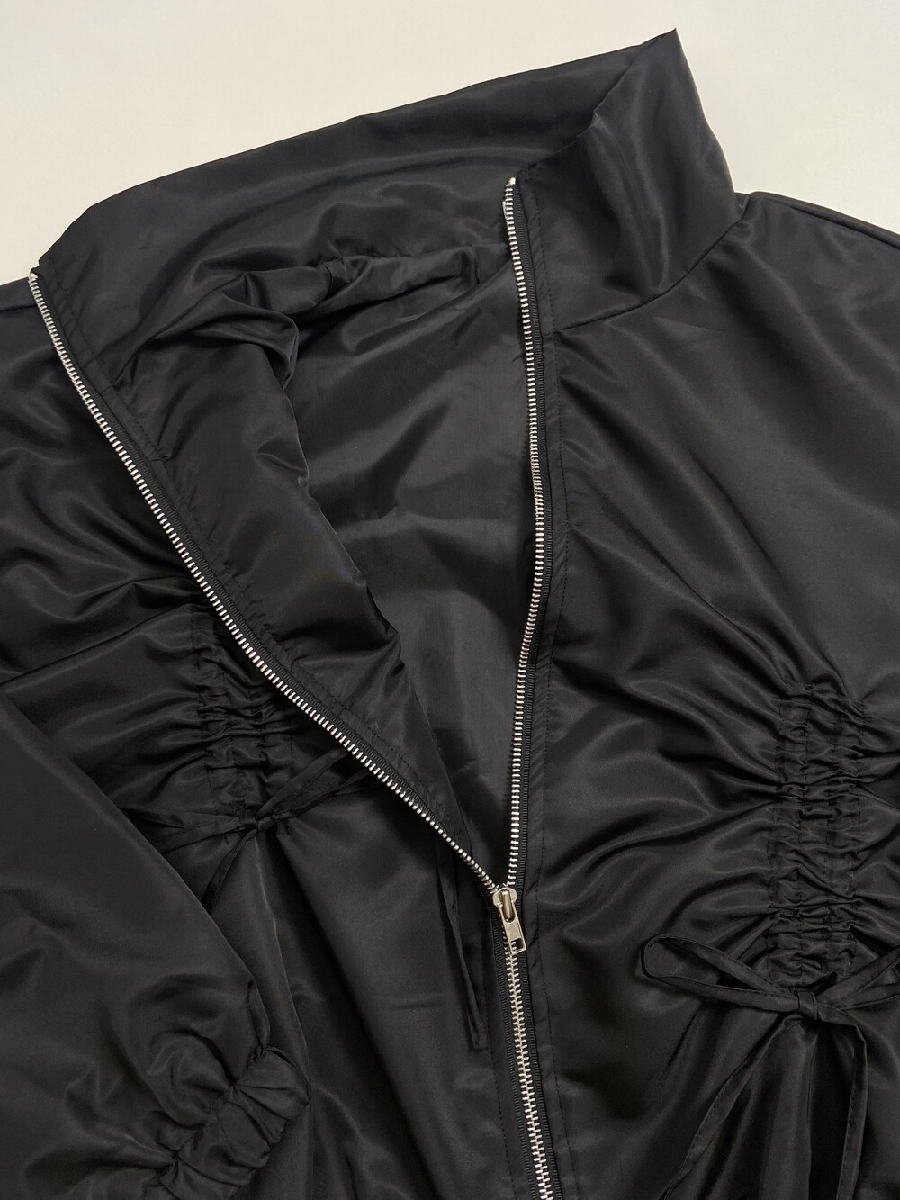 리본 디테일과 은은한 광택감으로 유니크한 윈드브레이커입니다.