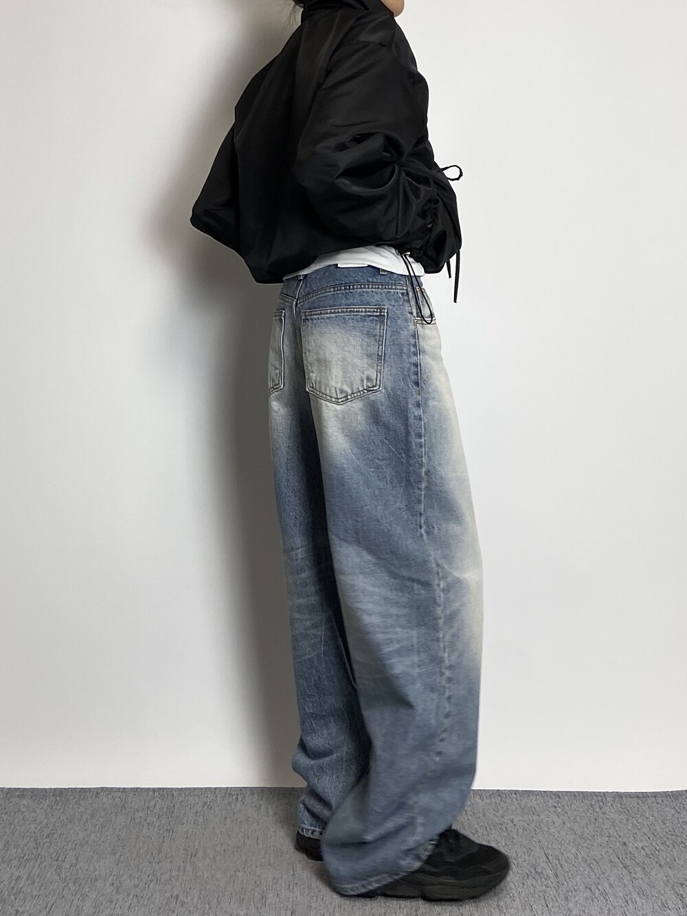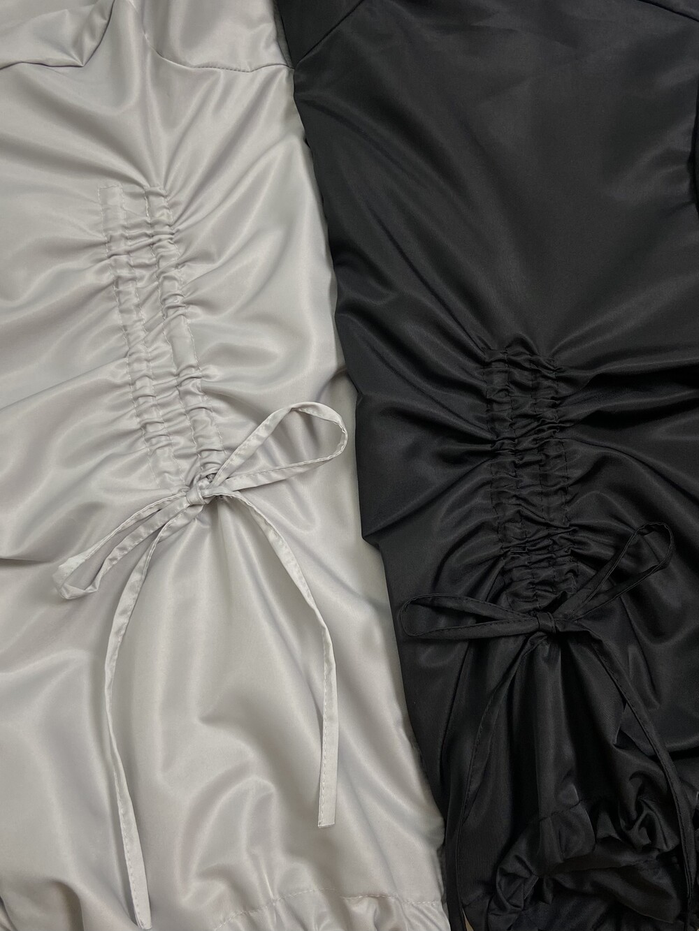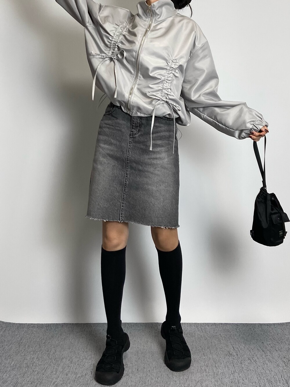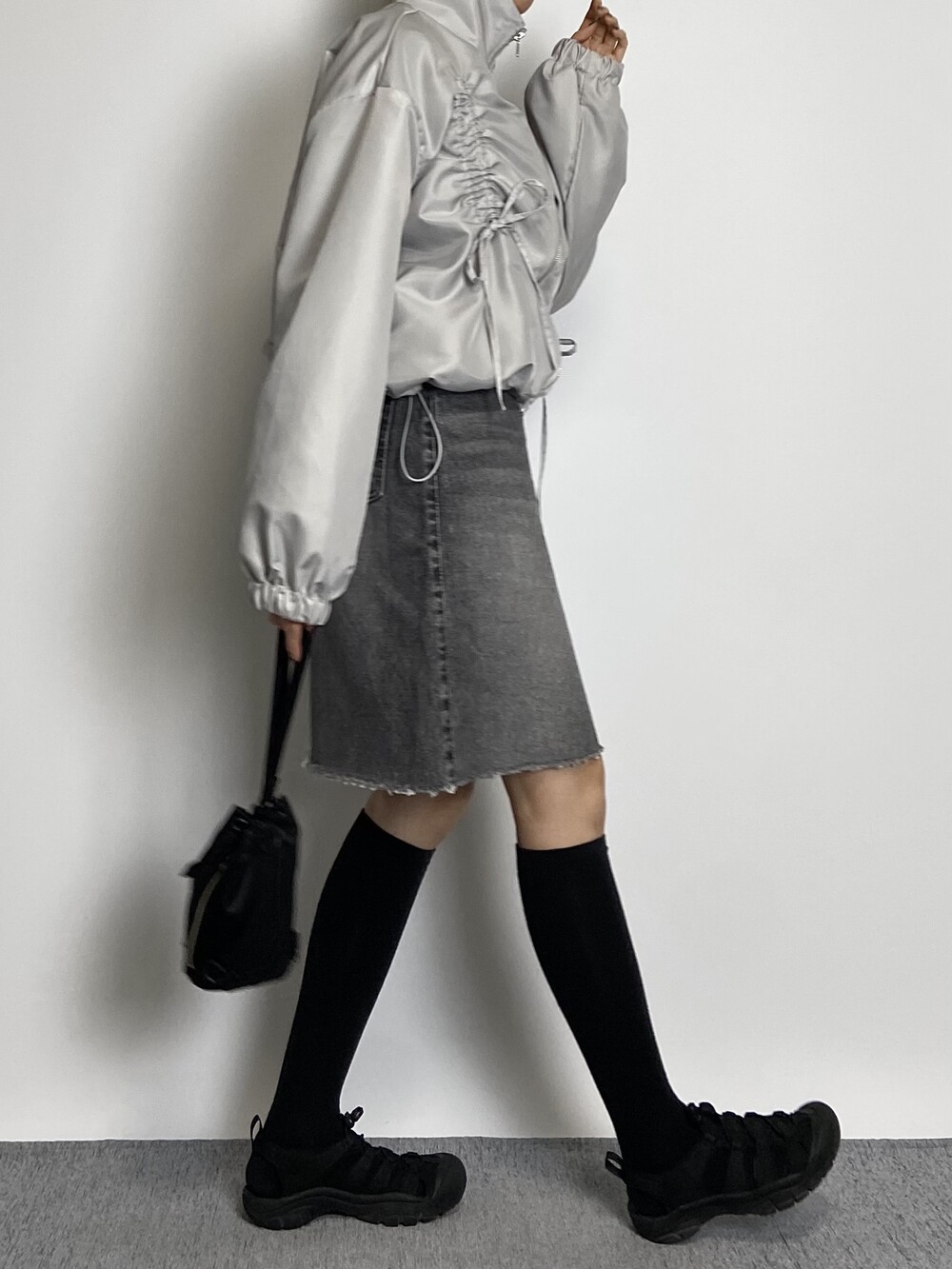 밑단 스트링으로 다양하게 핏 연출이 가능하며