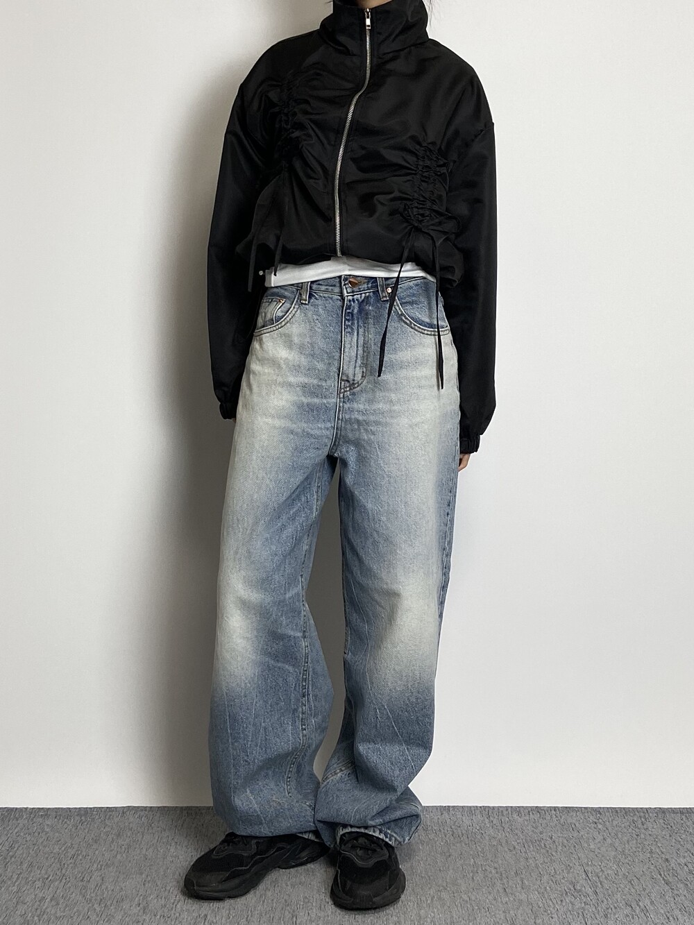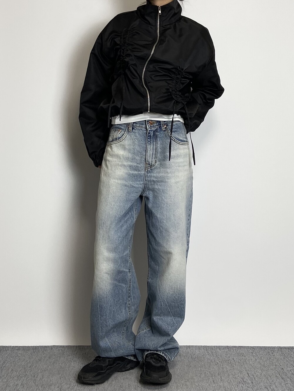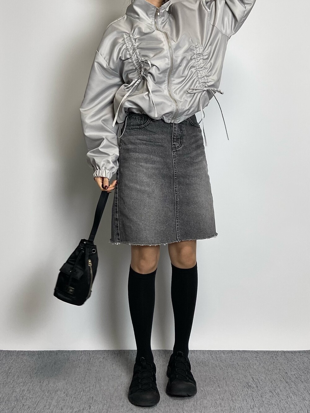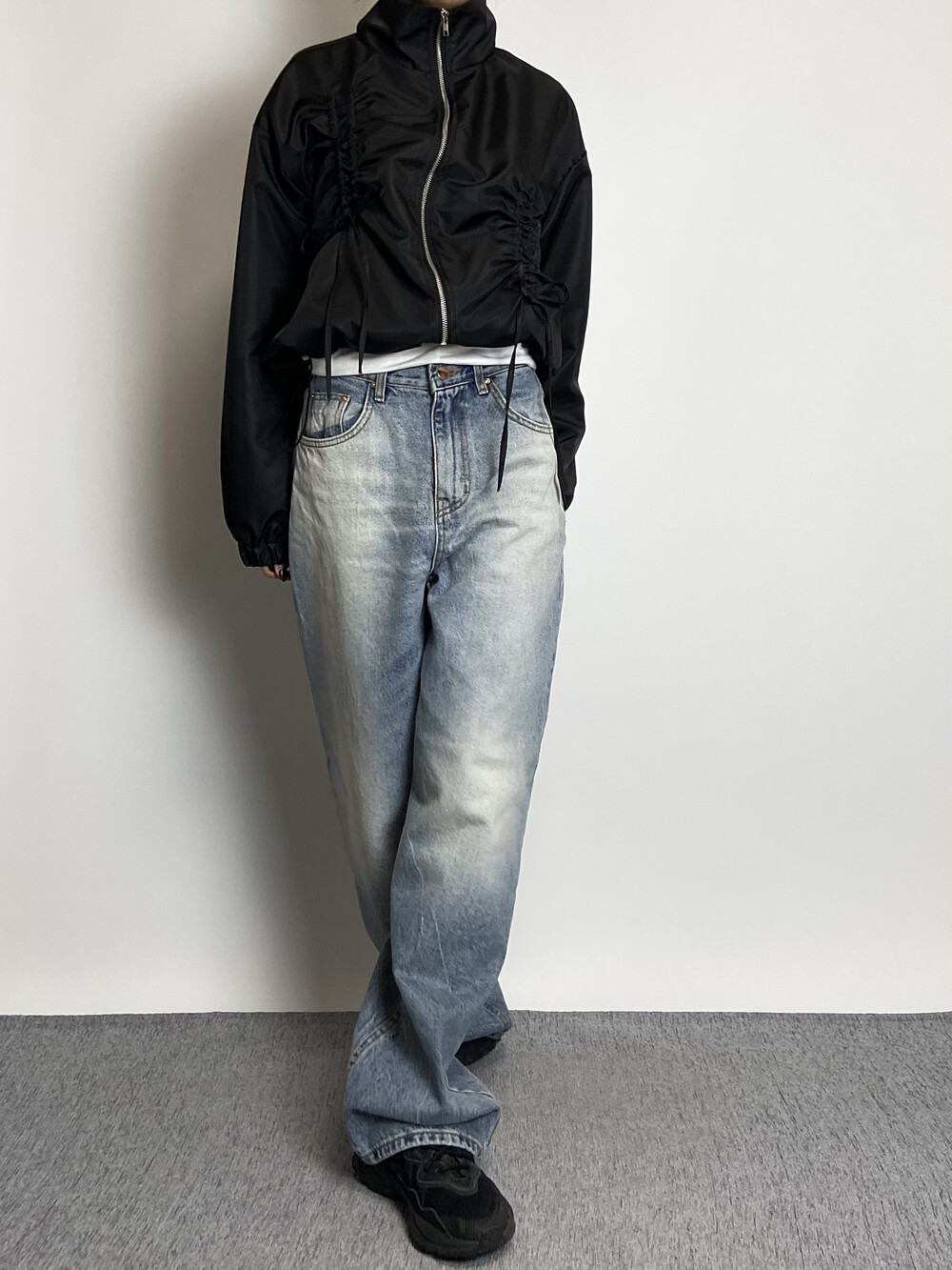 밑단 스트링으로 다양하게 핏 연출이 가능하며