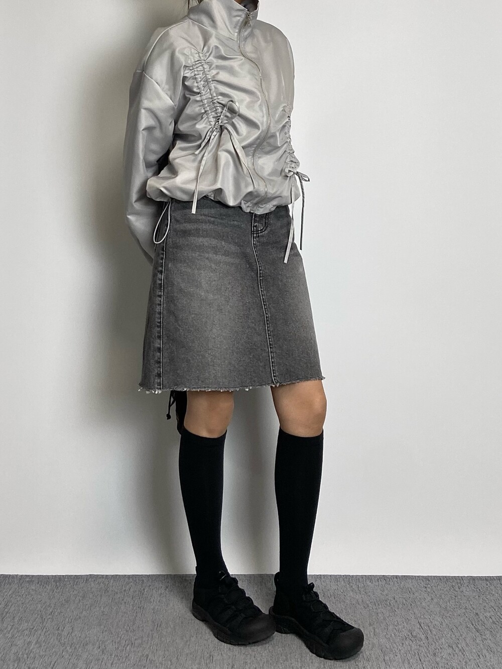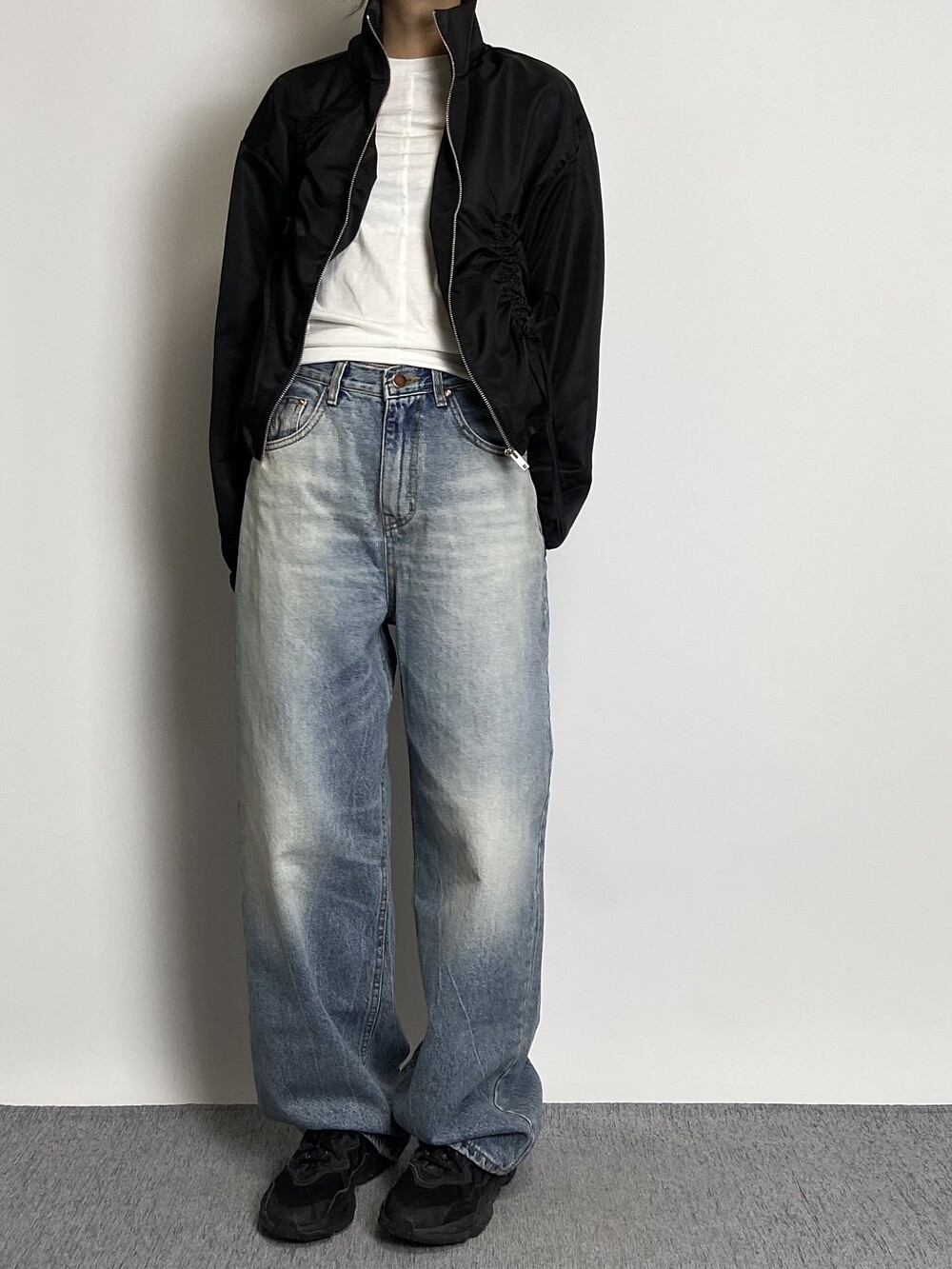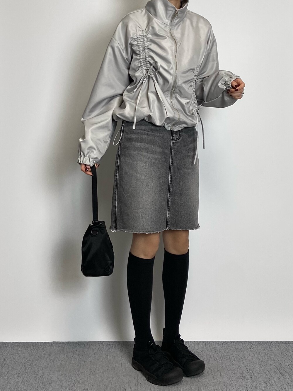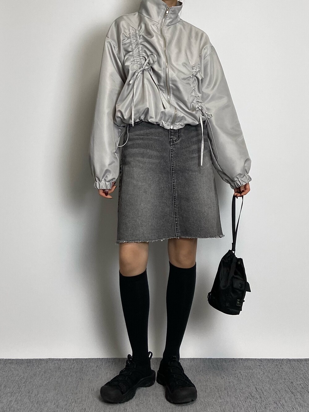 밑단 스트링으로 다양하게 핏 연출이 가능하며