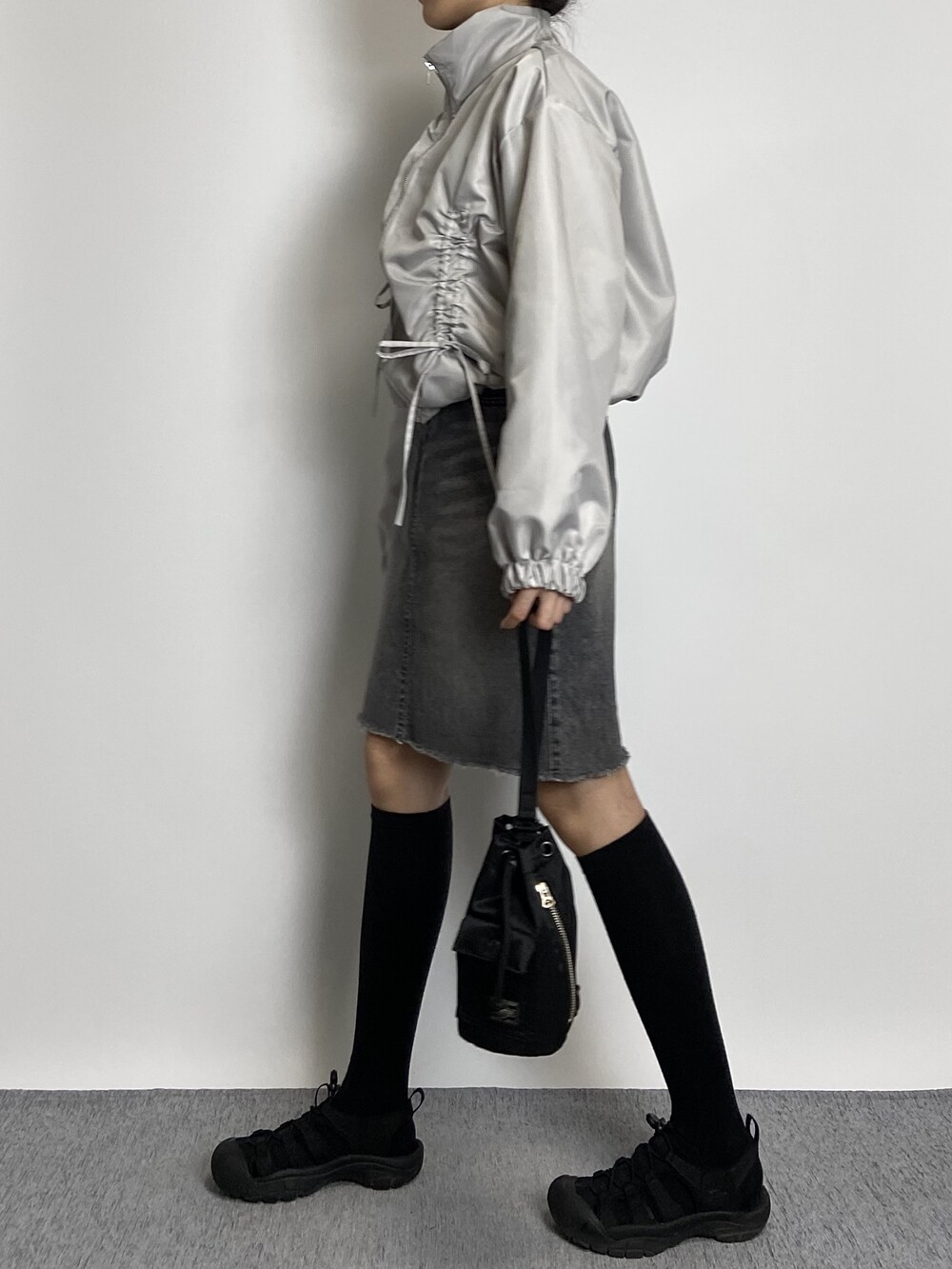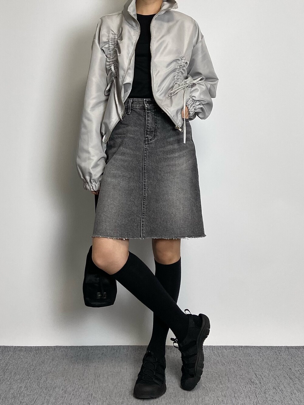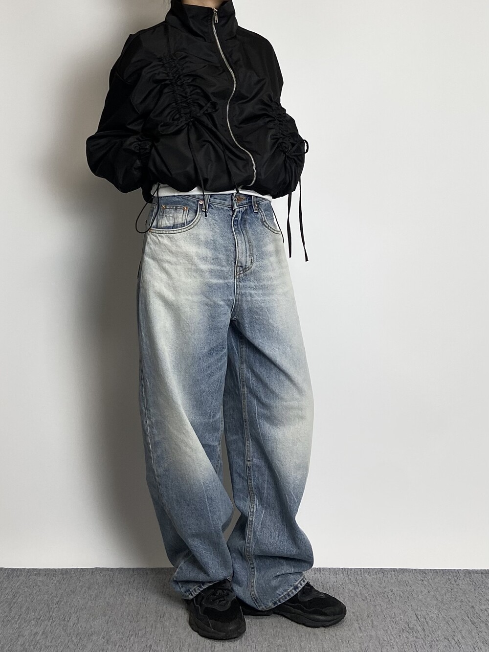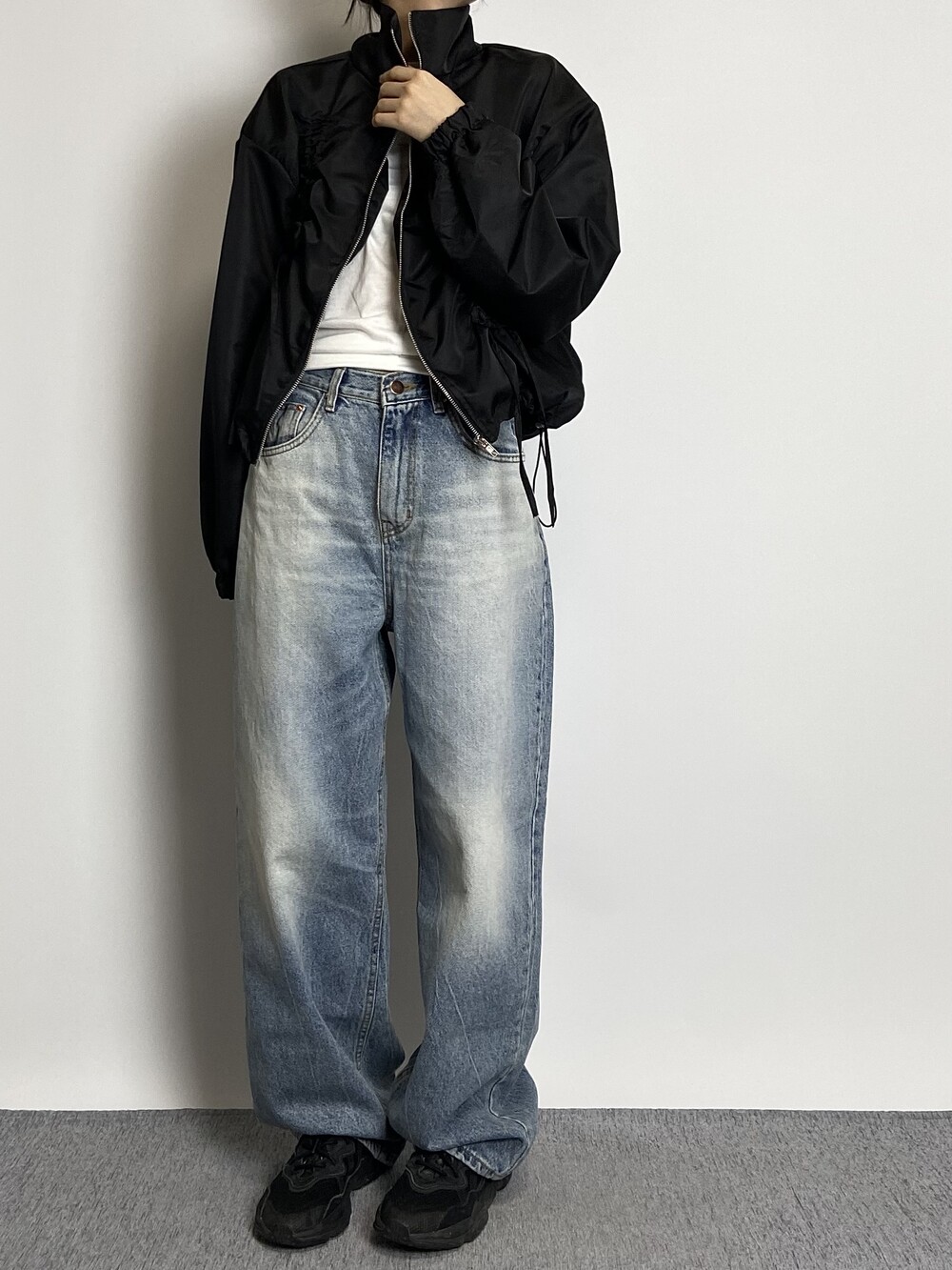 밑단 스트링으로 다양하게 핏 연출이 가능하며