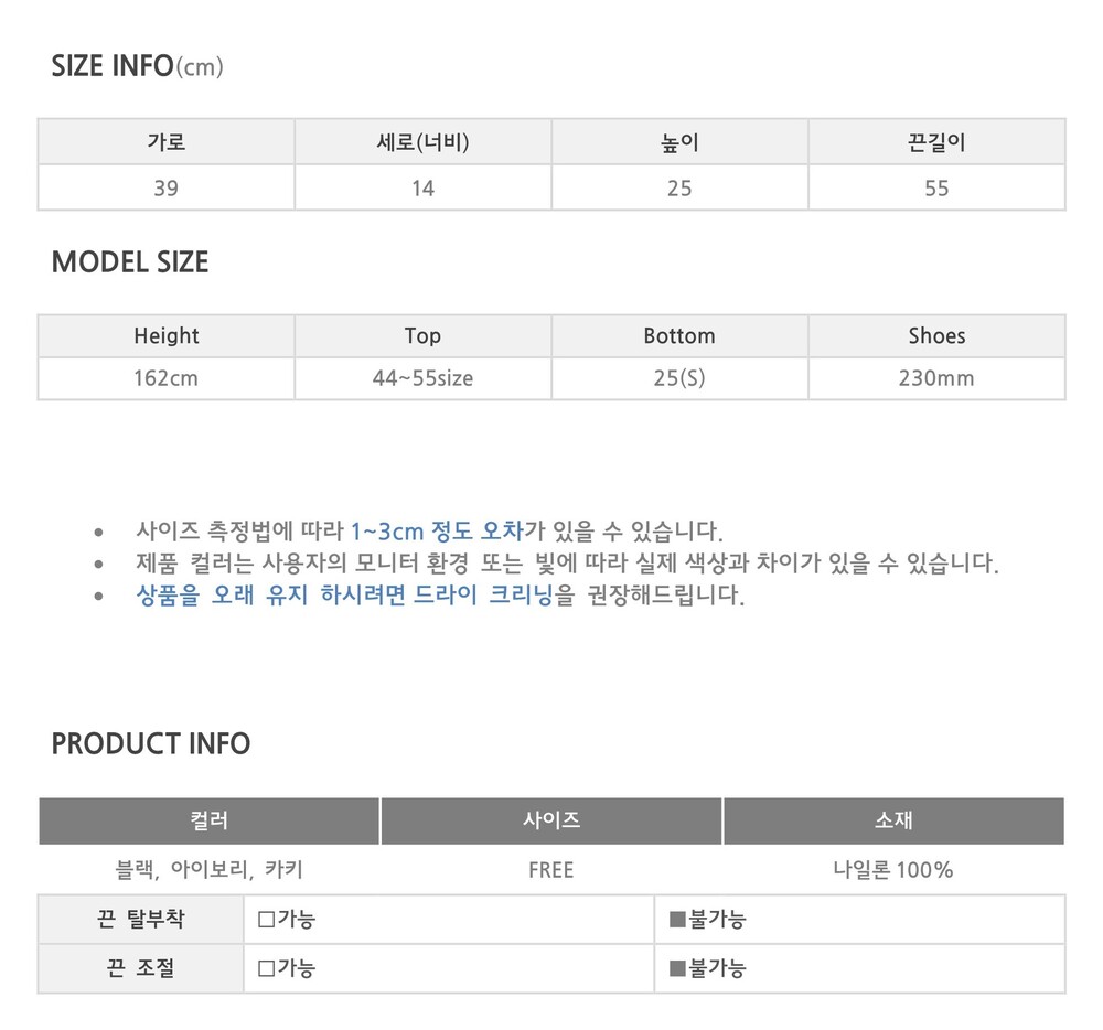 여행 가방으로 매치하기 좋은 숄더백입니다.