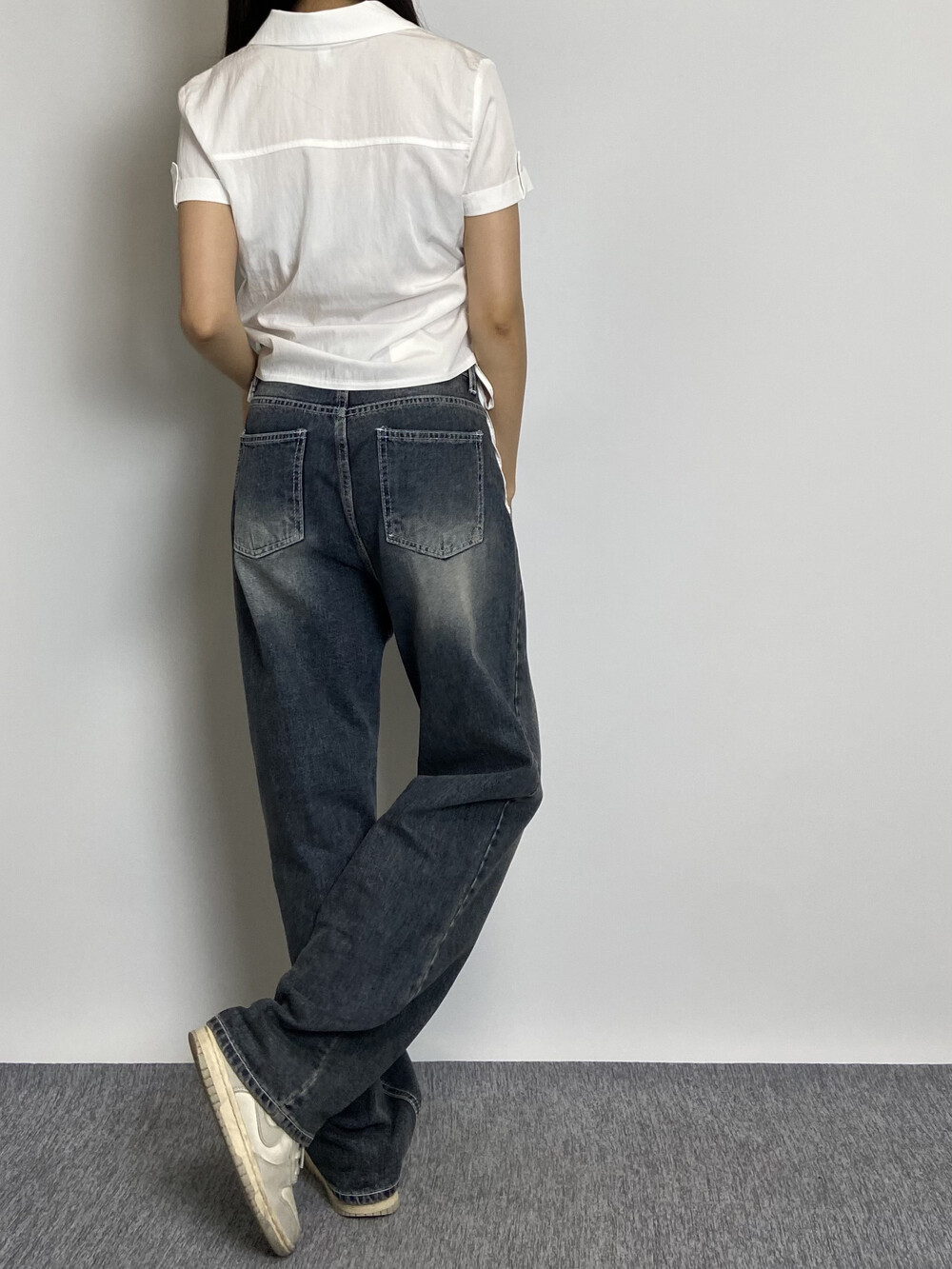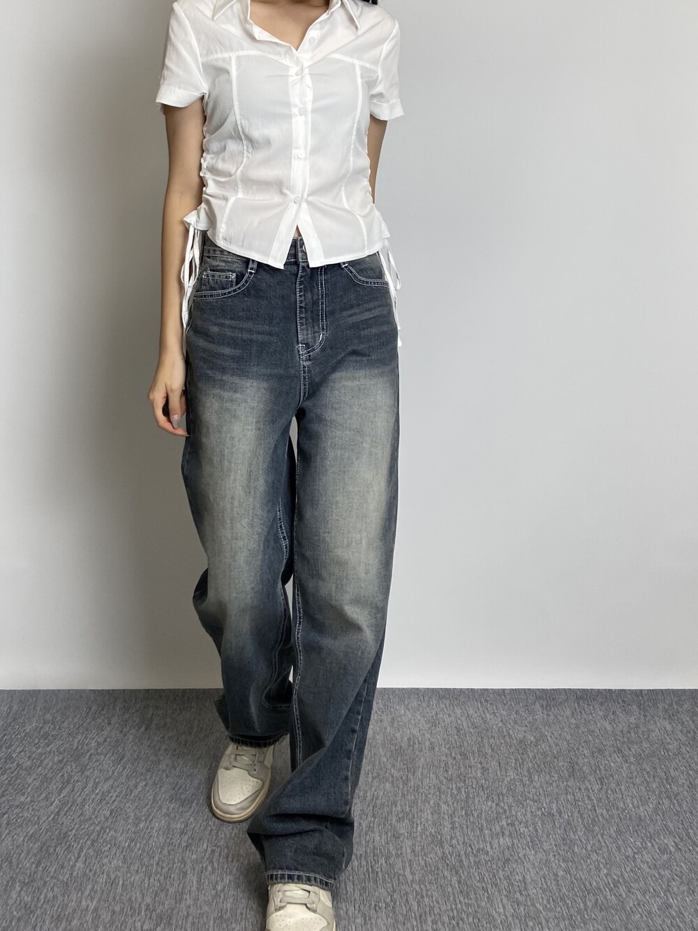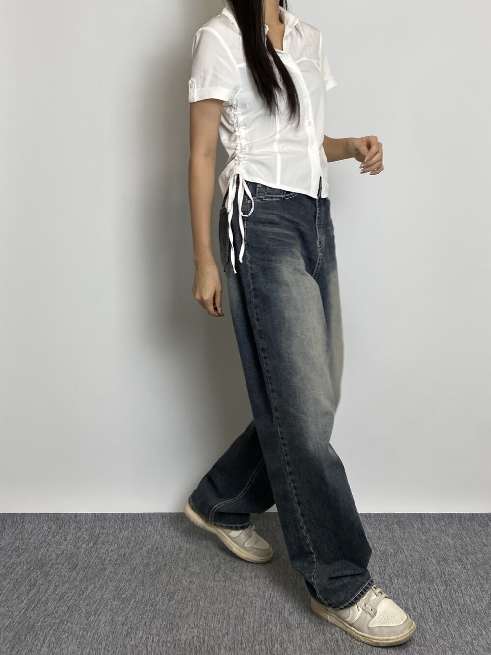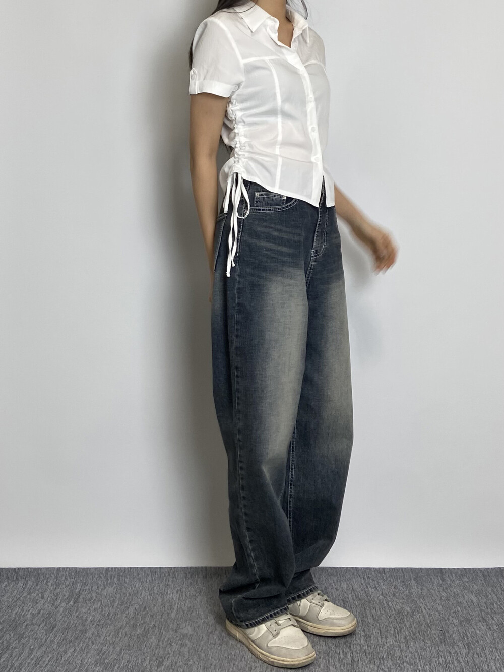 소매 롤업과 허리라인 셔링 디테일로 허리를 잘록하게 연출해 주며