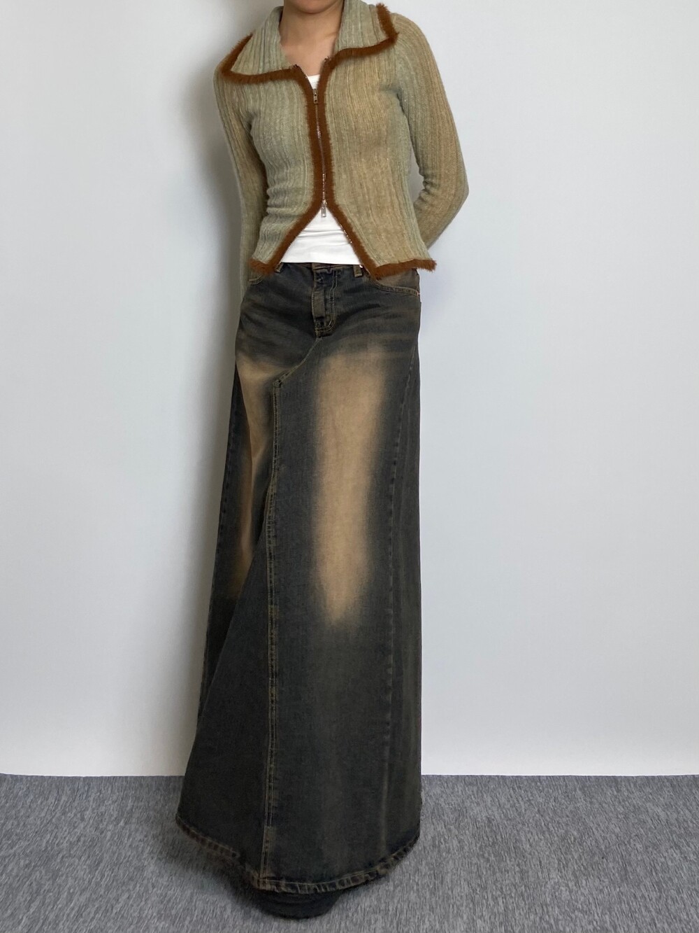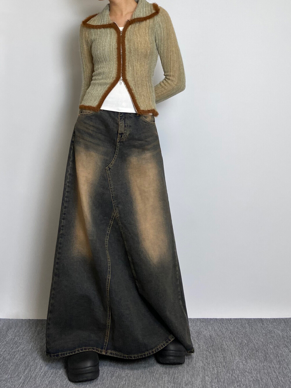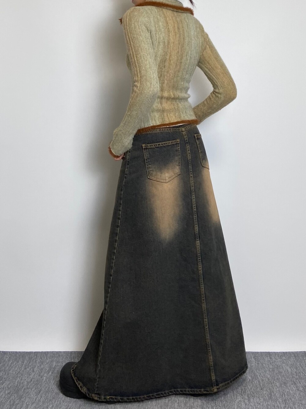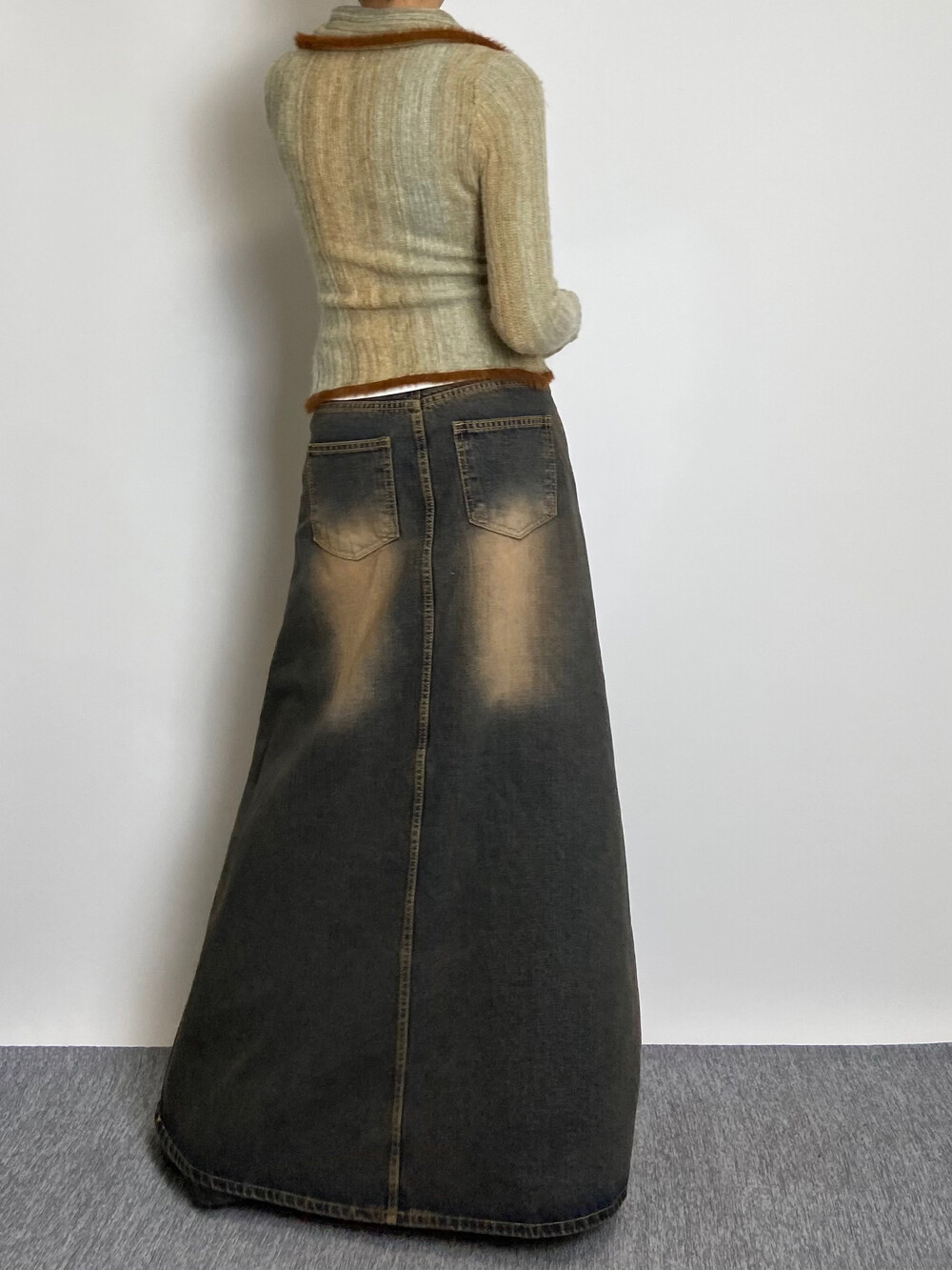 빈티지 샌드워싱 롱 데님 스커트 _372