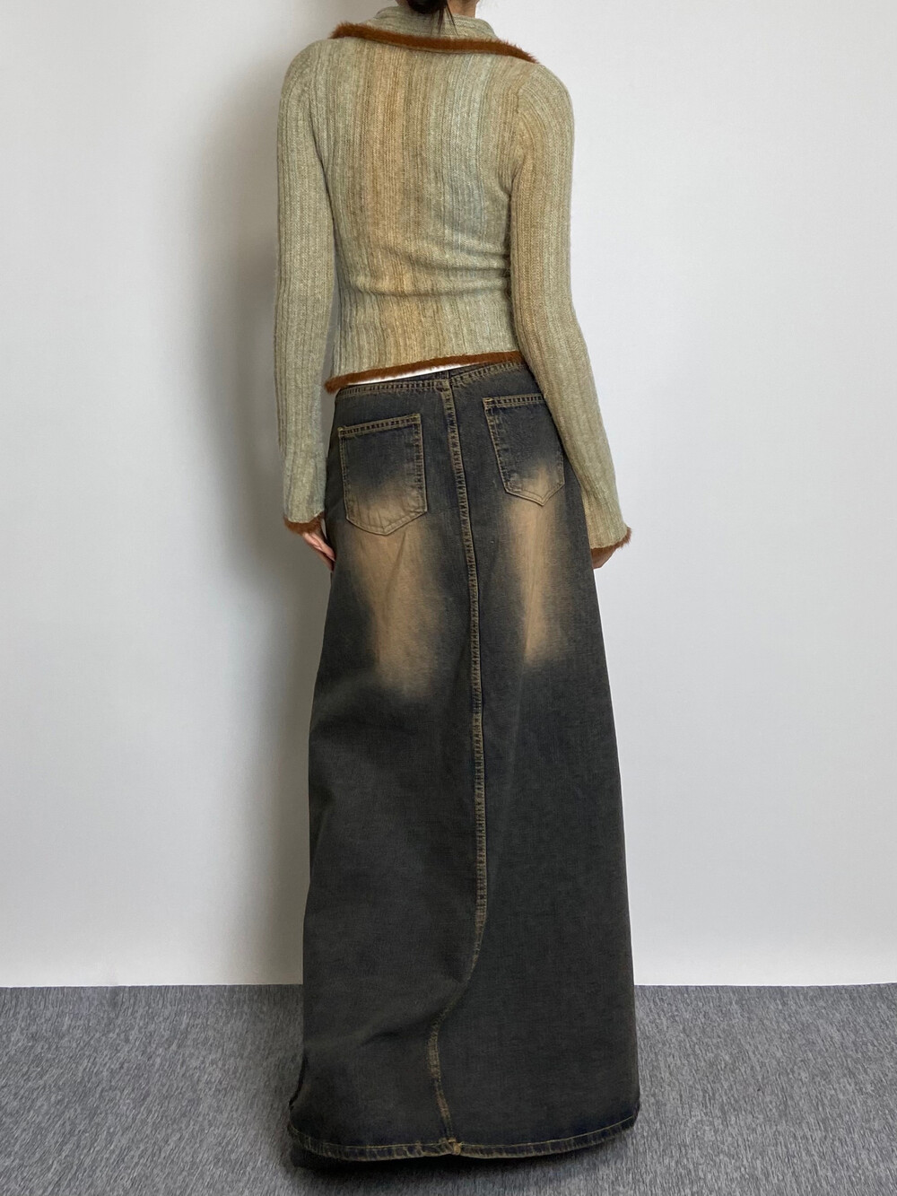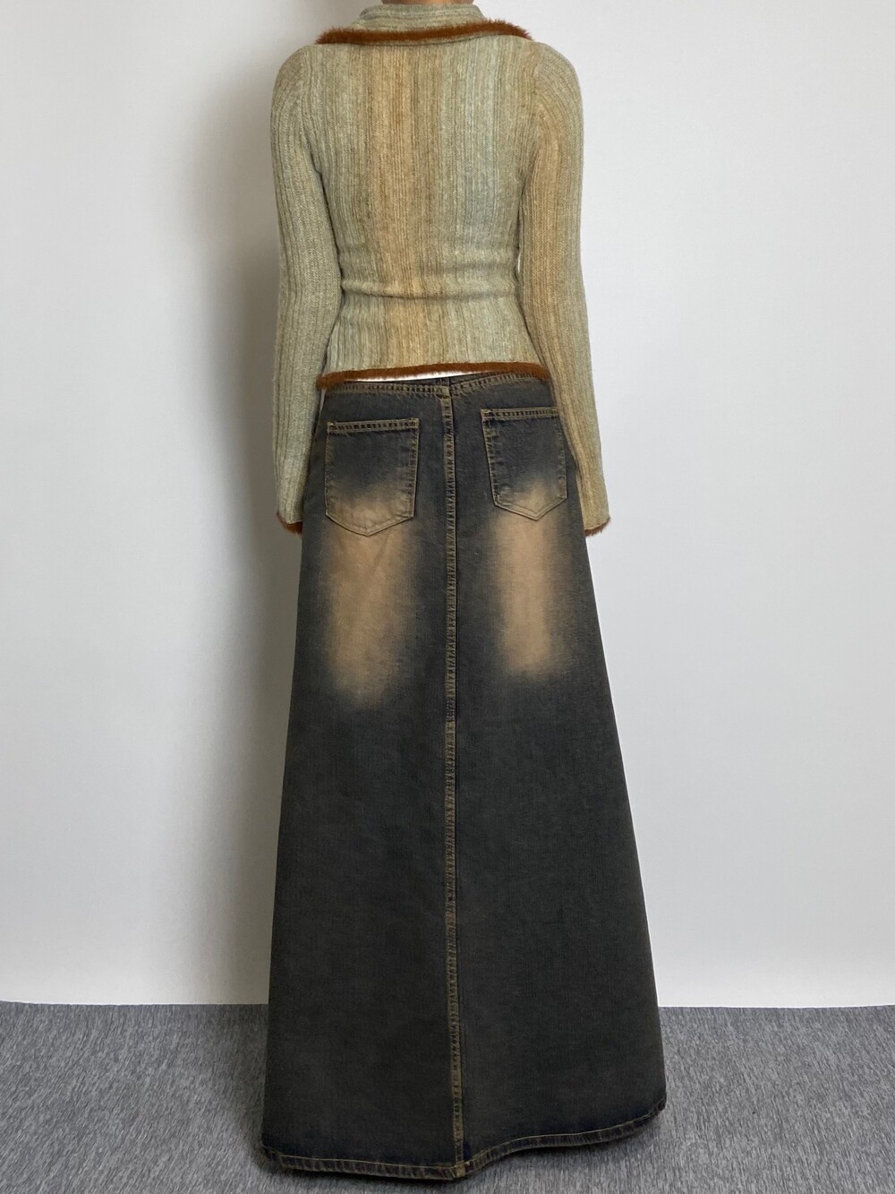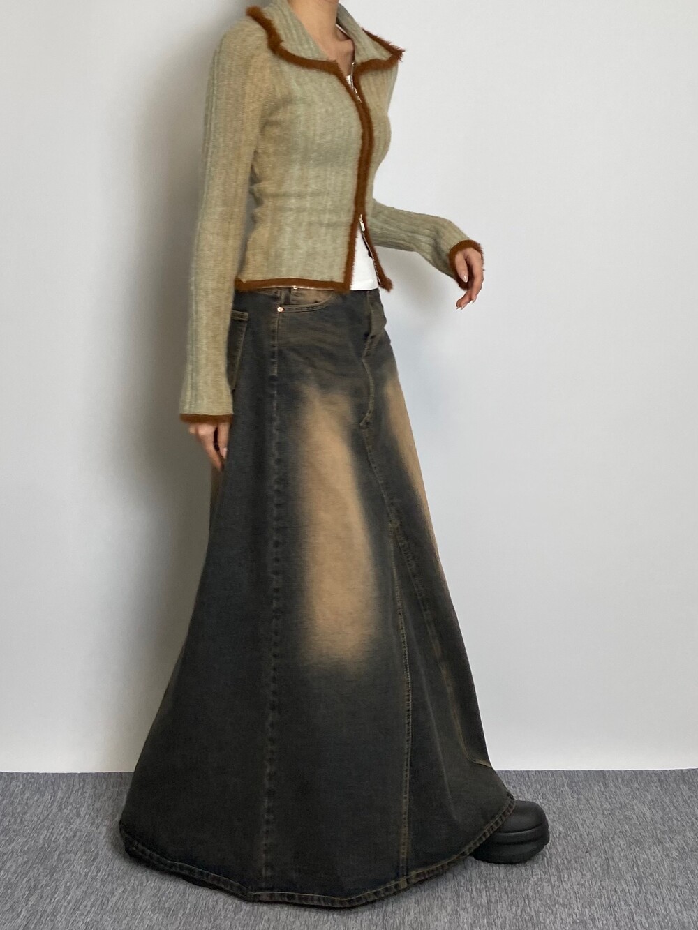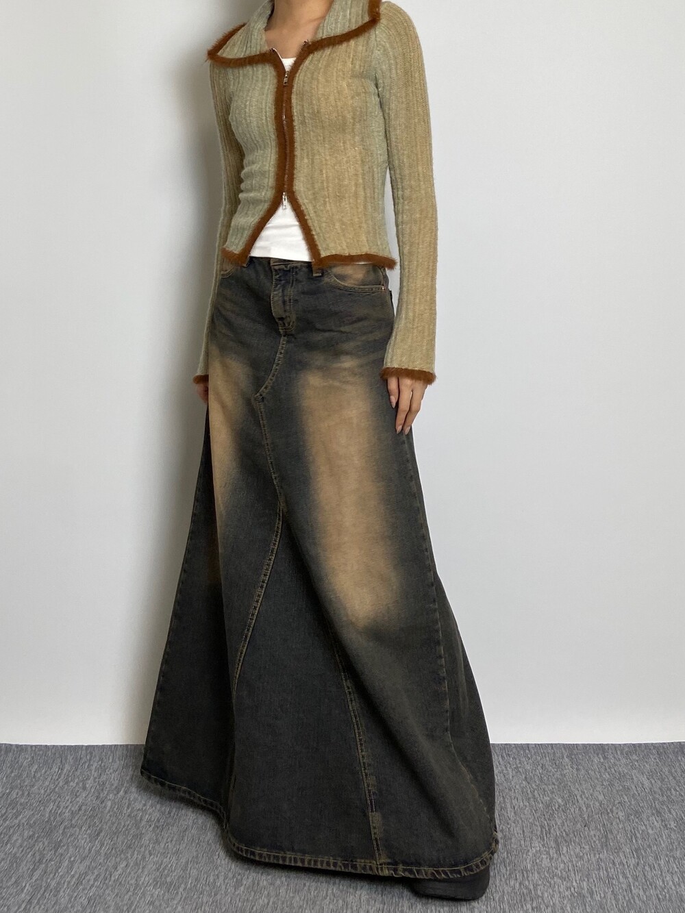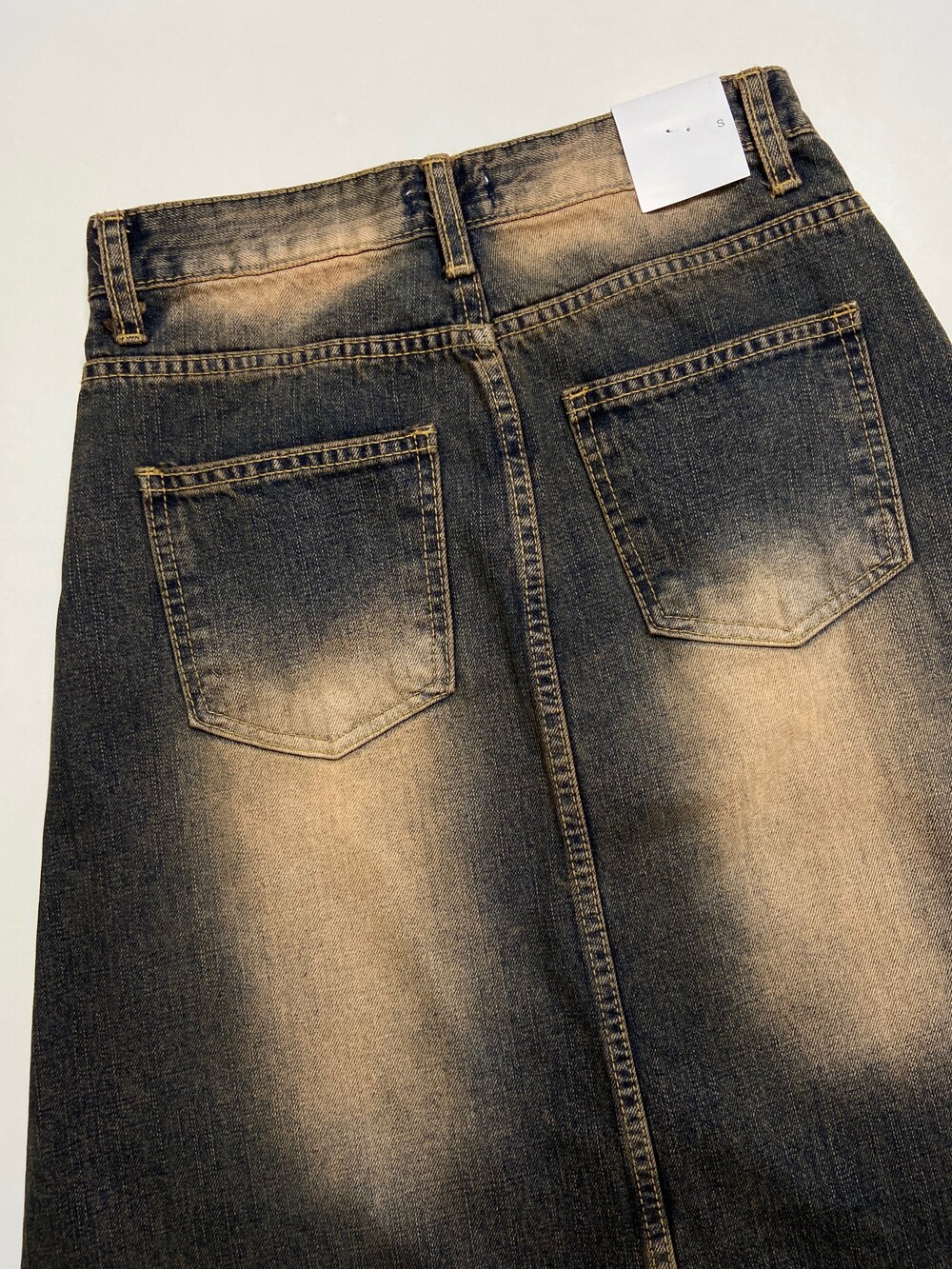 빈티지 샌드워싱 롱 데님 스커트 _372