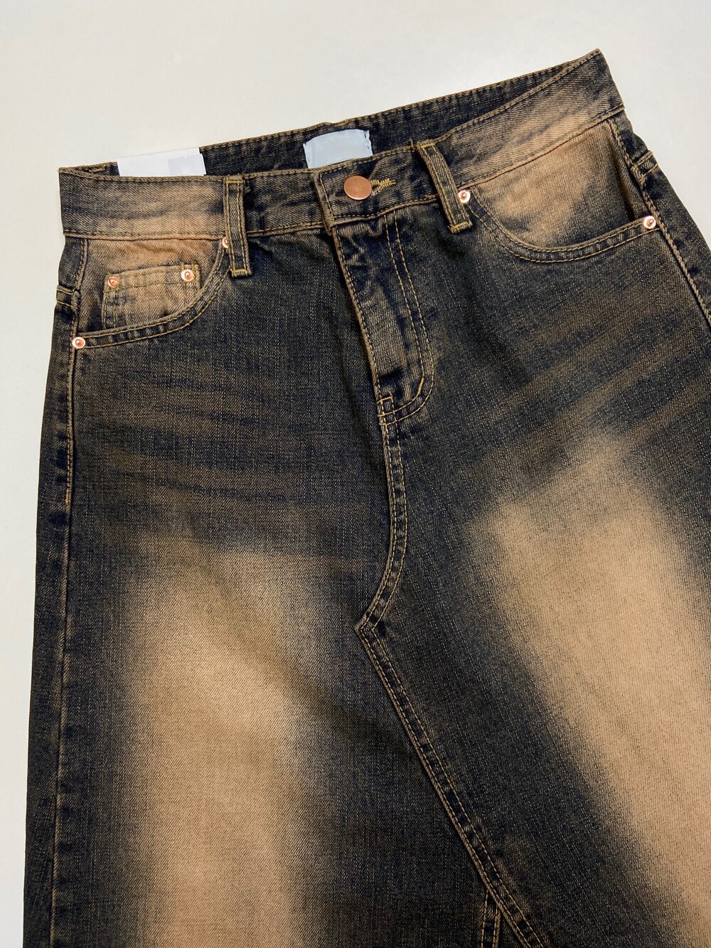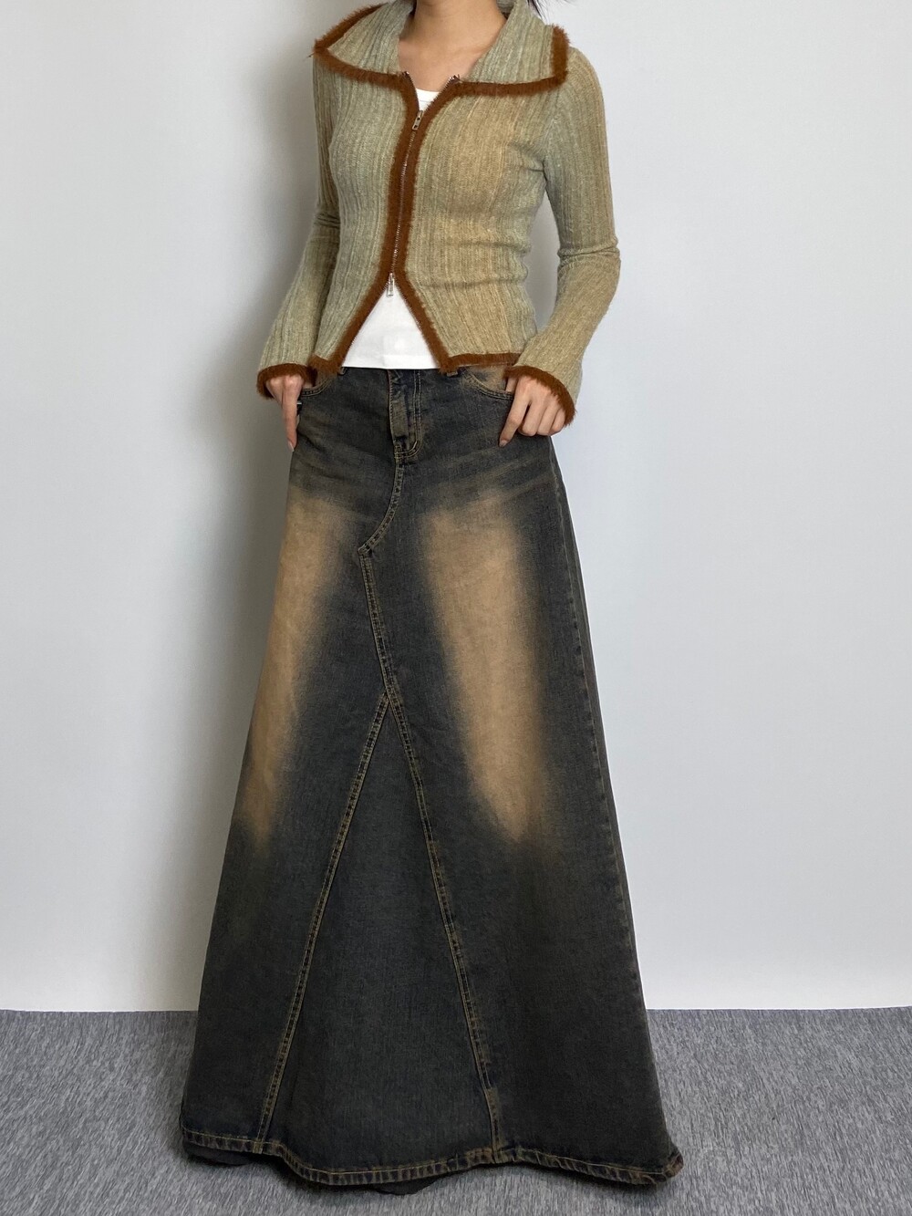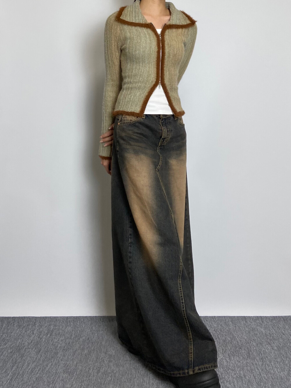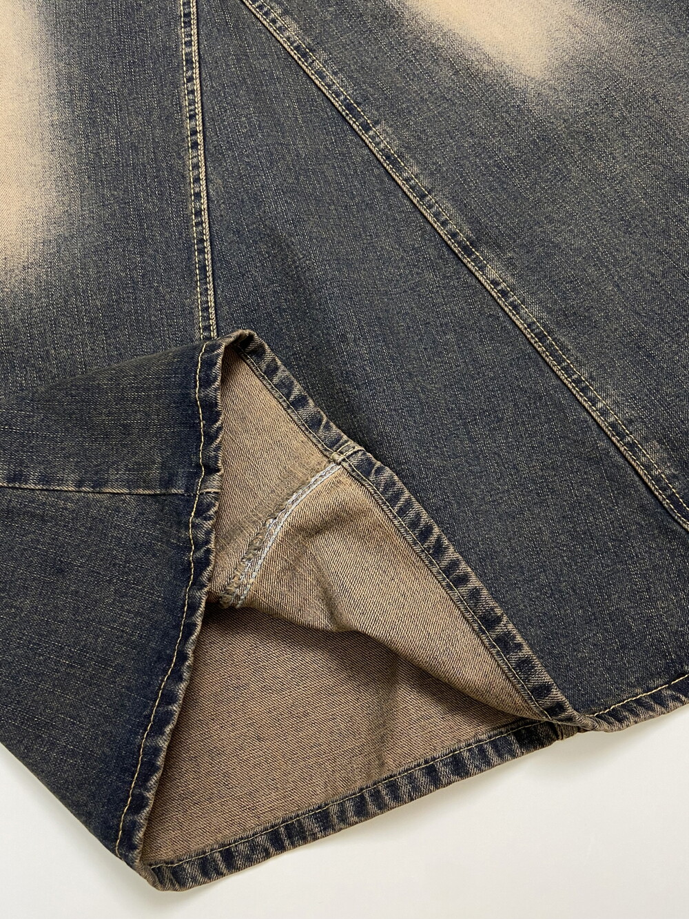 빈티지 샌드워싱 롱 데님 스커트 _372