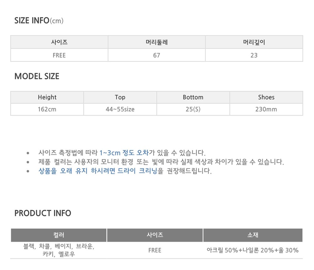 남녀 공용으로 착용 가능하며 니트 짜임으로 약간의 사이즈 차이가 있을 수 있습니다.